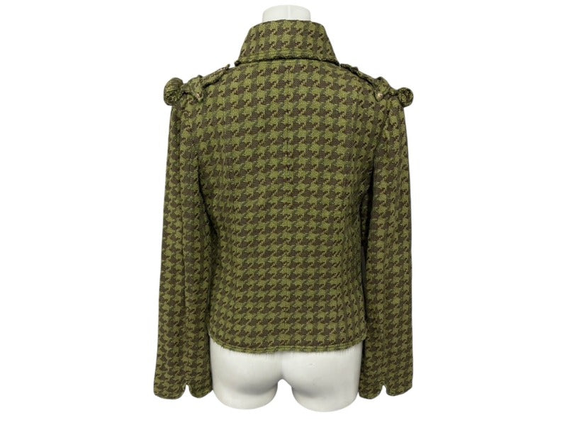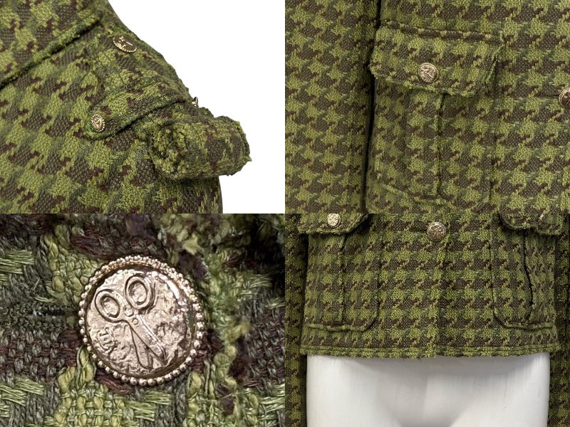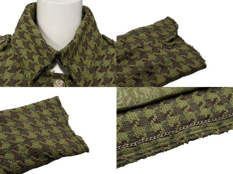 極美品 CHANEL シャネル ツイードジャケット P32181V18440 サイズ36 ココマーク グリーン ブラウン シルク リネン コットン 中古 4b007356