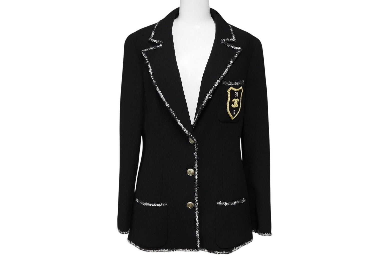 極美品 CHANEL シャネル プラダを着た悪魔 カールラガーフェルド期 ココマーク テーラードジャケット ブラック サイズ38 P24952V12963 中古 4b008194