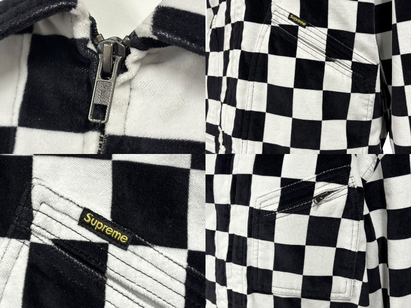 極美品 Supreme シュプリーム 20AW ヴェルヴェット ワーク ジャケット ホワイト ブラック コットン ポリエステル サイズ M シルバー金具 中古 4b010141