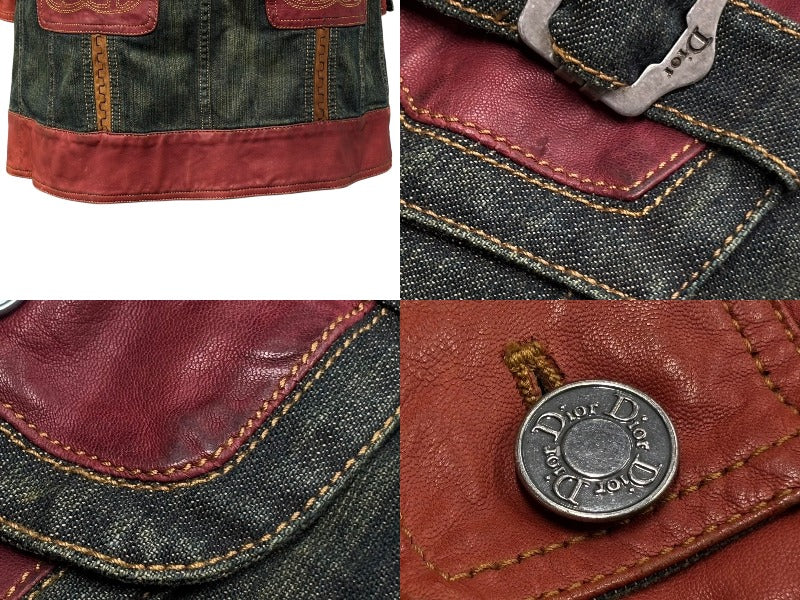 Christian Dior クリスチャンディオール デニムジャケット ブラック グリーン レッド 6E12088110 コットン ポリウレタン 良品 中古 4b010386
