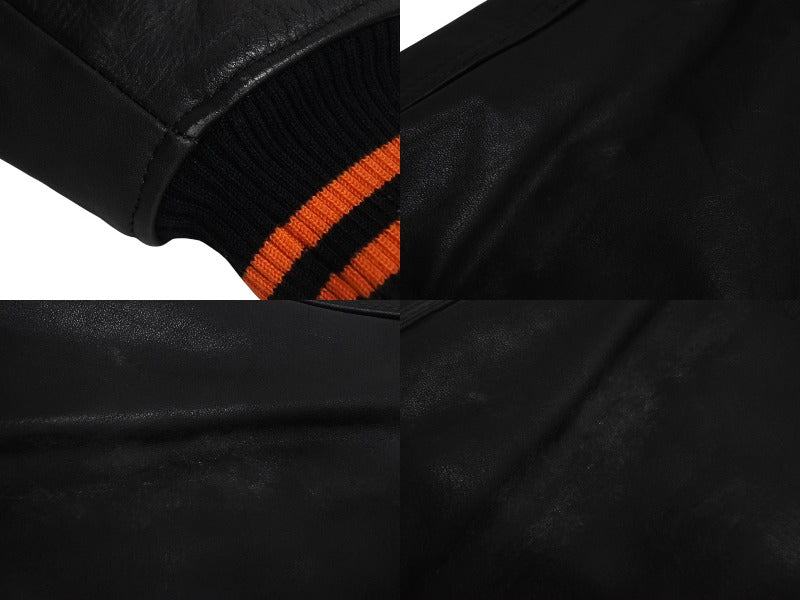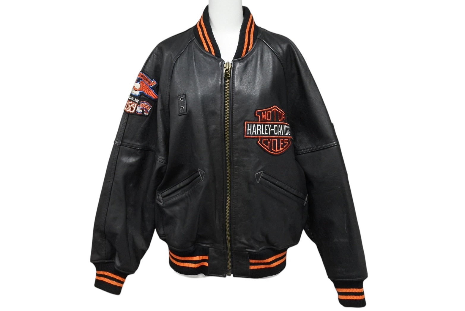 HARLEY DAVIDSON ハーレーダビットソン 総刺繍 オールレザー ジャケット レザー ナイロン ブラック オレンジ サイズM 美品 中古 4c069480
