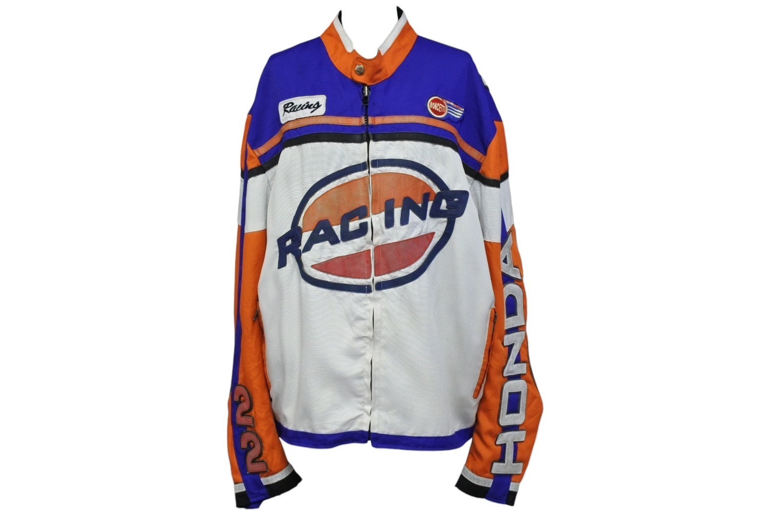 HONDA ホンダ 90s レーシング ジャケット マルチカラー ヴィンテージ アウター レザー コットン サイズXL 良品 中古 4c069713