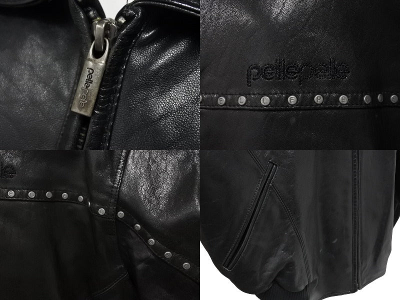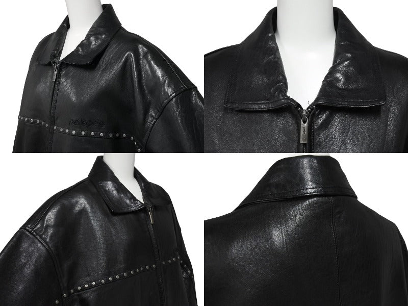 pellepelle ペレペレ レザージャケット ビックシルエット スタッズ ナイロン レザー ブラック 美品 中古 4c070376