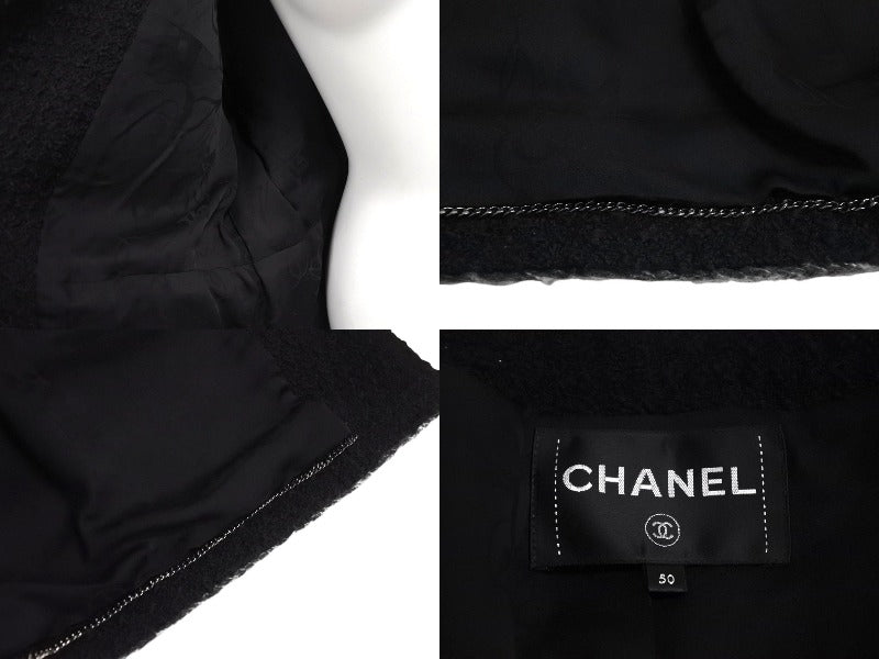 極美品 CHANEL シャネル メンズ 17SS ツイード ウール ジャケット ブラック ノーカラージャケット P56910V37165 サイズ50 中古 4c071210