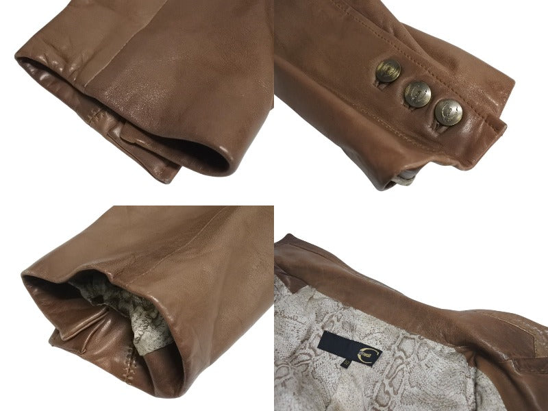 JUST CAVALLI ジャストカヴァリ ナッパレザーテーラードジャケット サイズ52 ブラウン ルーマニア製 美品 中古 4c071322