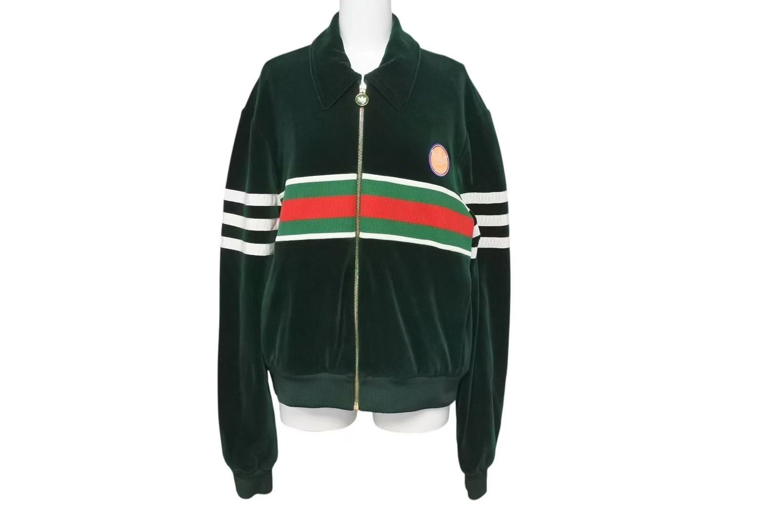 アディダスのトラックジャケットにグッチのデザインを施した品と高級感のあるアイテムに仕上がっています。