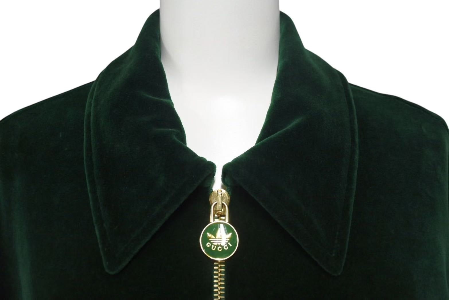極美品 GUCCI × adidas グッチ アディダス シェリーライン ベロア トラックジャケット グリーン 691782 XJEKT パッチ ロゴ ゴールド金具 サイズS 中古 4c075514