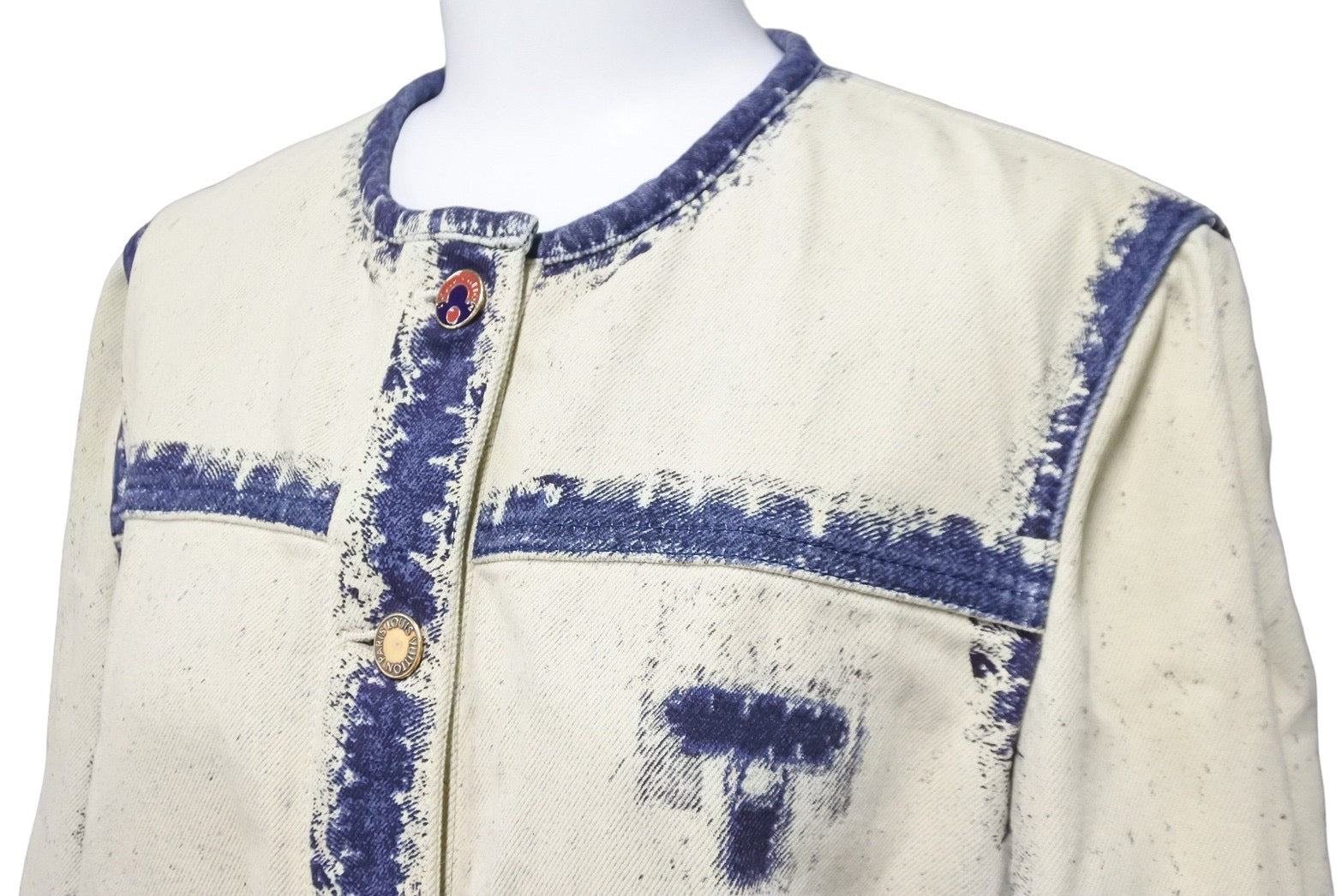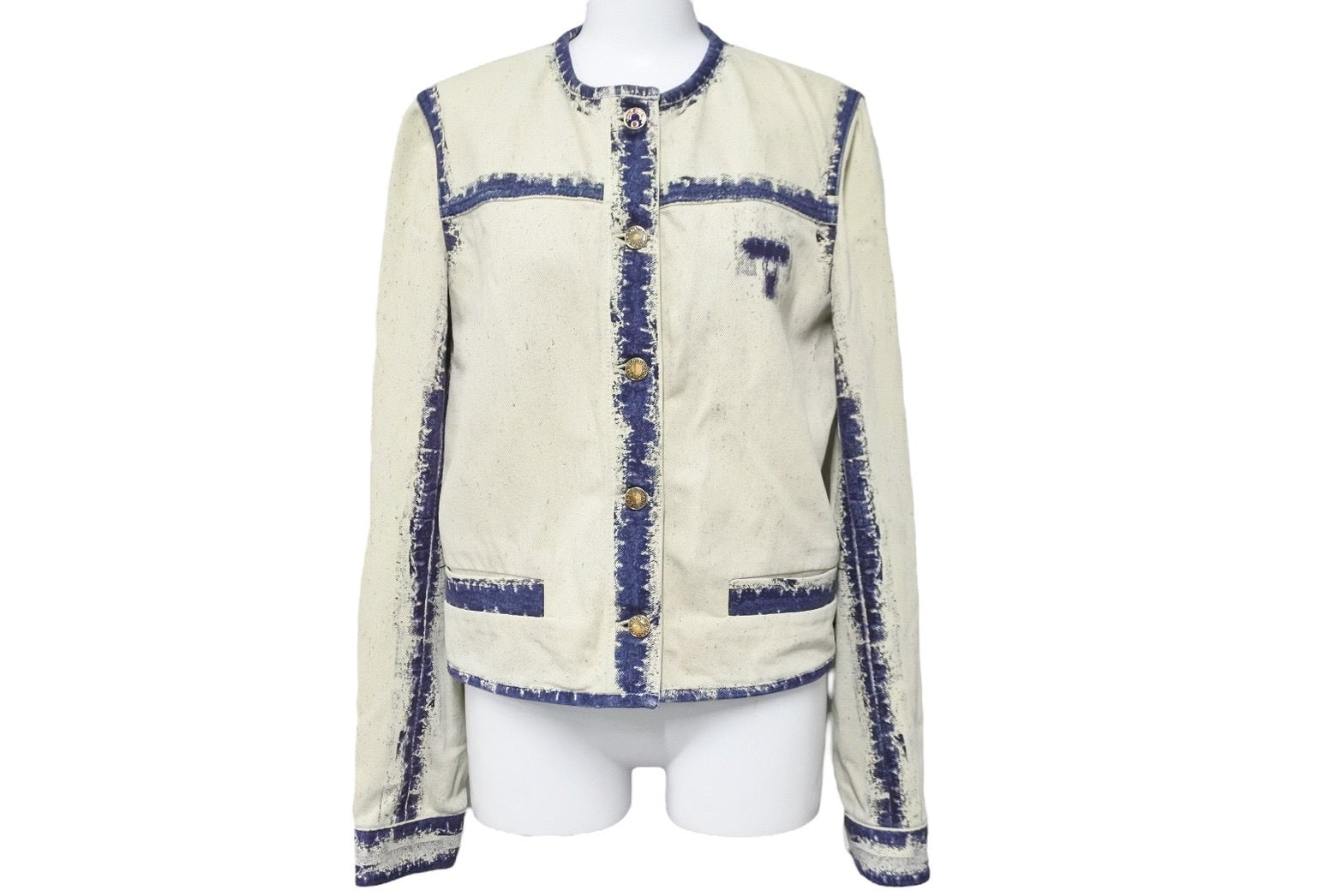 柔らかな質感のコットンデニムを使用した、ノーカラージャケット。