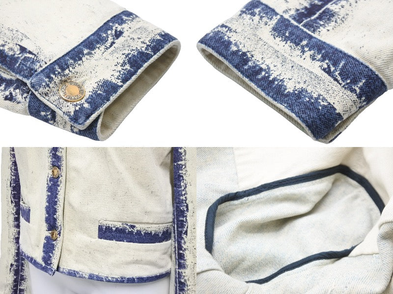 ブリーチ加工でパイピング調のデザインに仕上げたフェミニンな一着です。