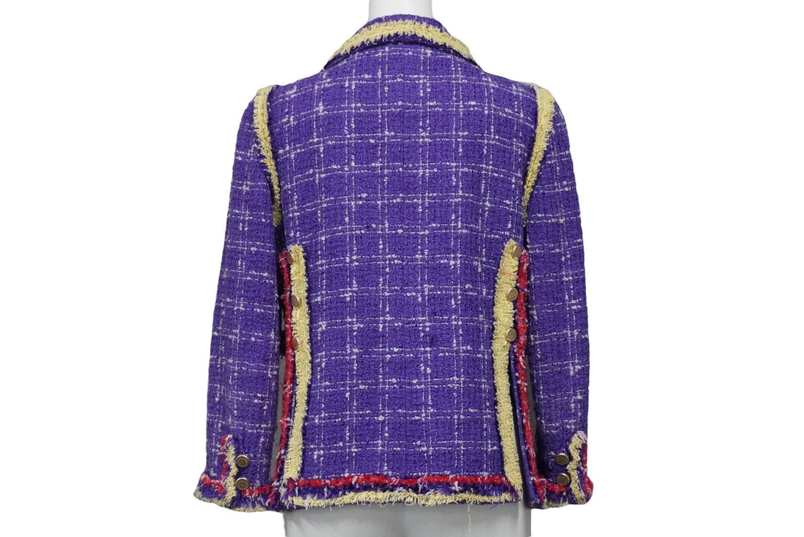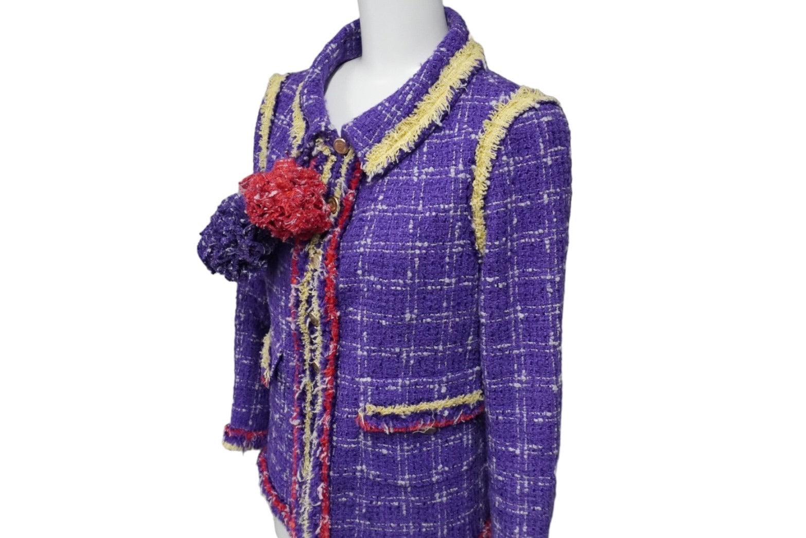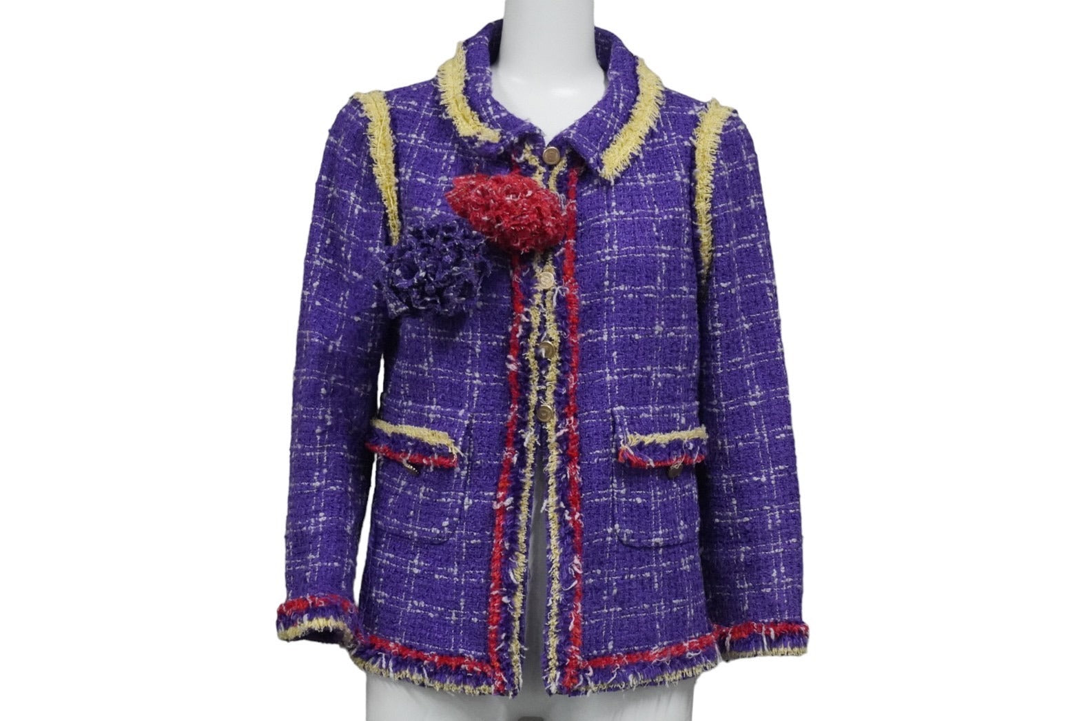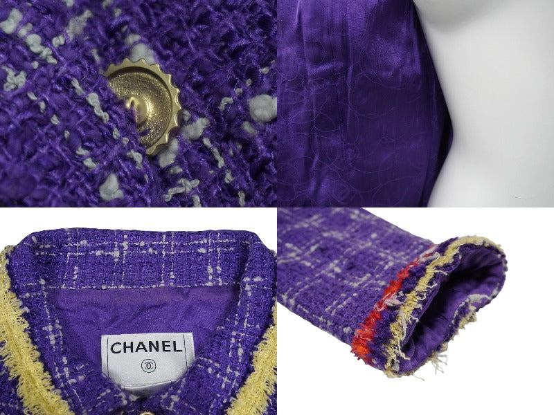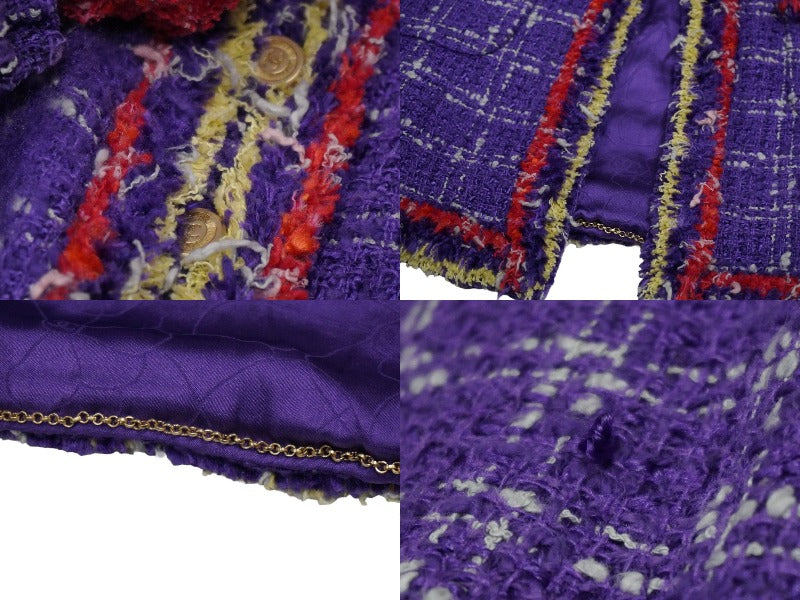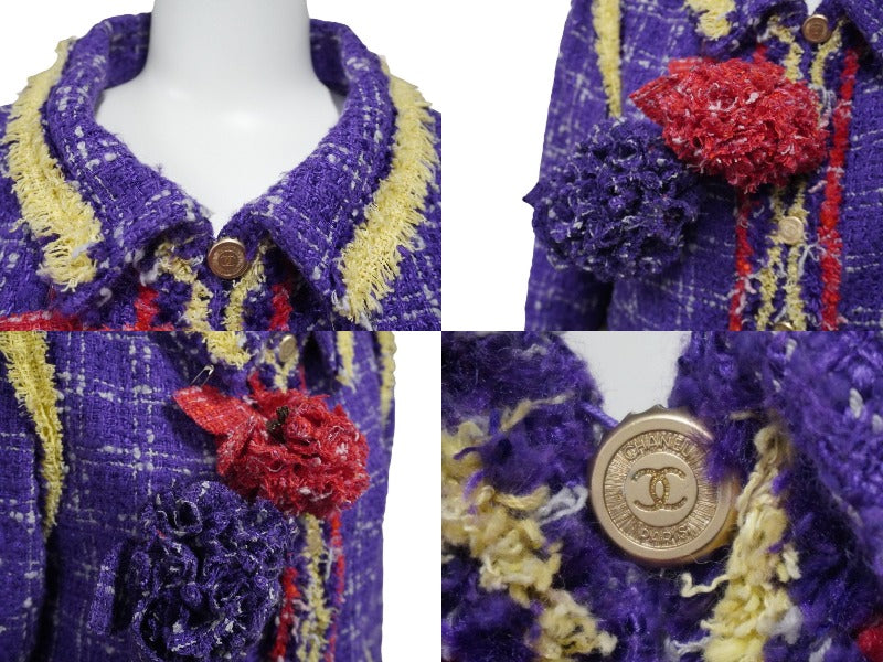 CHANEL シャネル ツイードジャケット カメリア エパレト 06P P28594 パープル レッド イエロー サイズ34 美品 中古 54051