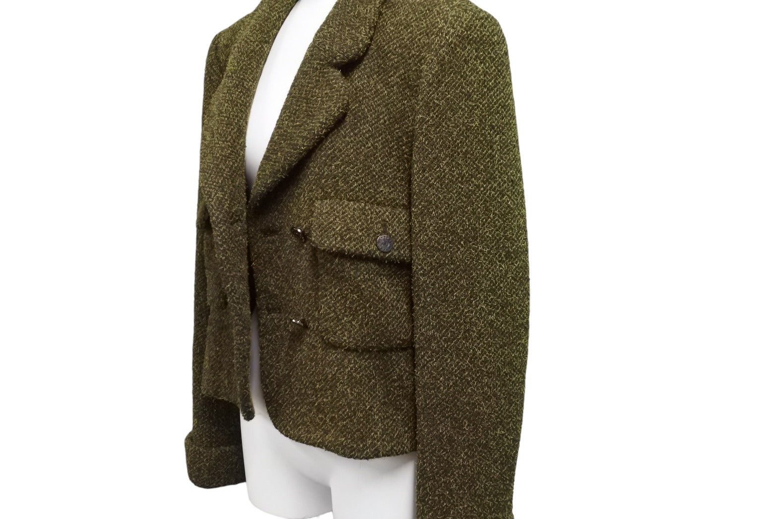 CHANEL シャネル ダブルジャケット ツイードジャケット P09216V05806 size38 97A グリーン 美品 中古 56615