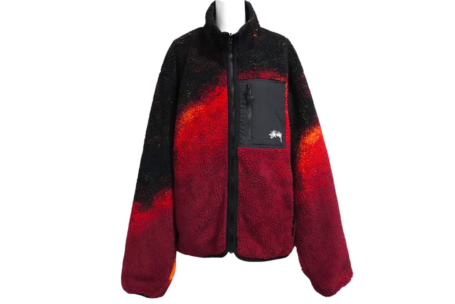 STUSSY ステューシー リバーシブル シェルパフリース ナイロン ジップジャケット レッド M 118529 美品 中古 58761