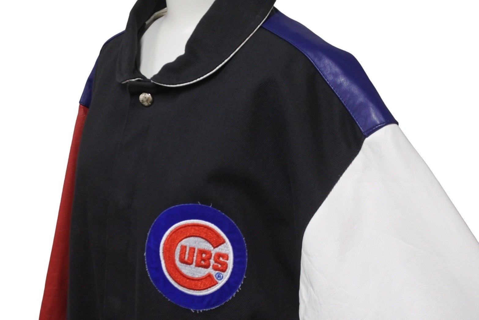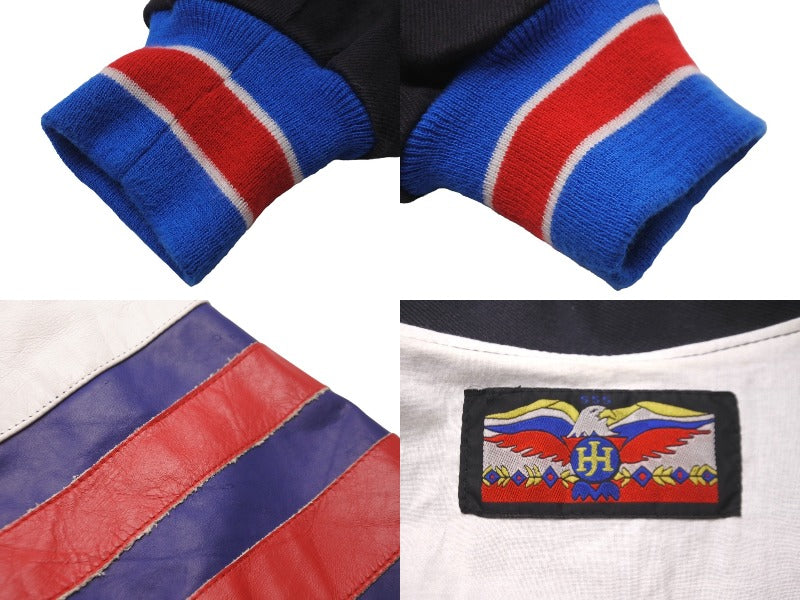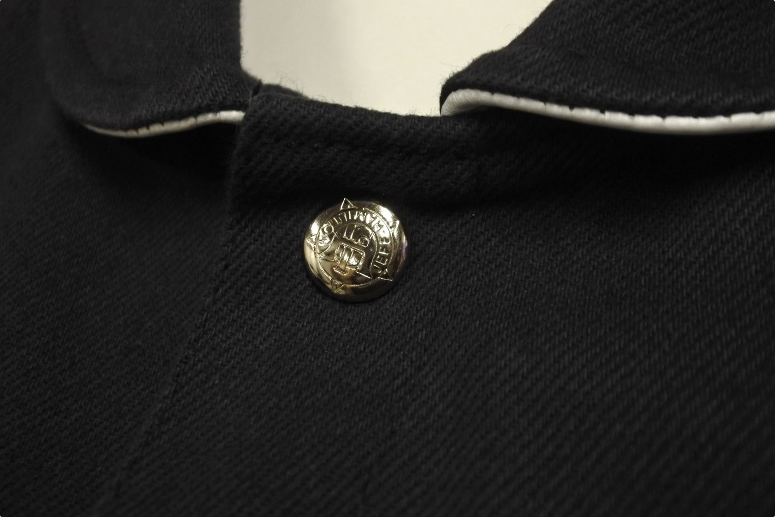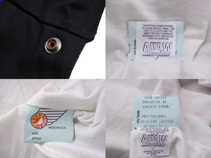 ボタン内側にサビ、多少の色落ち、レザー部分にキズやシワがあります。