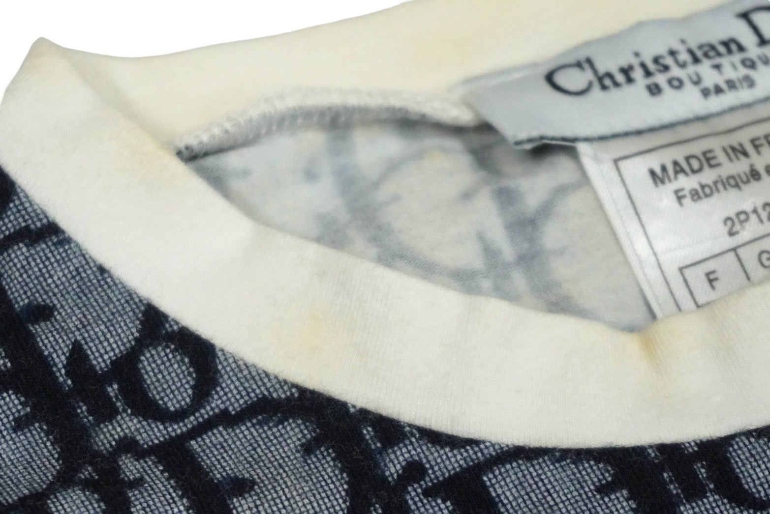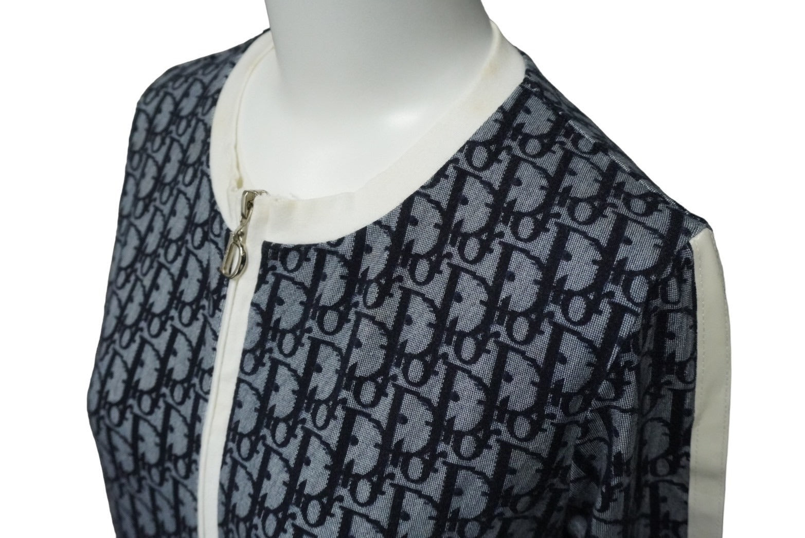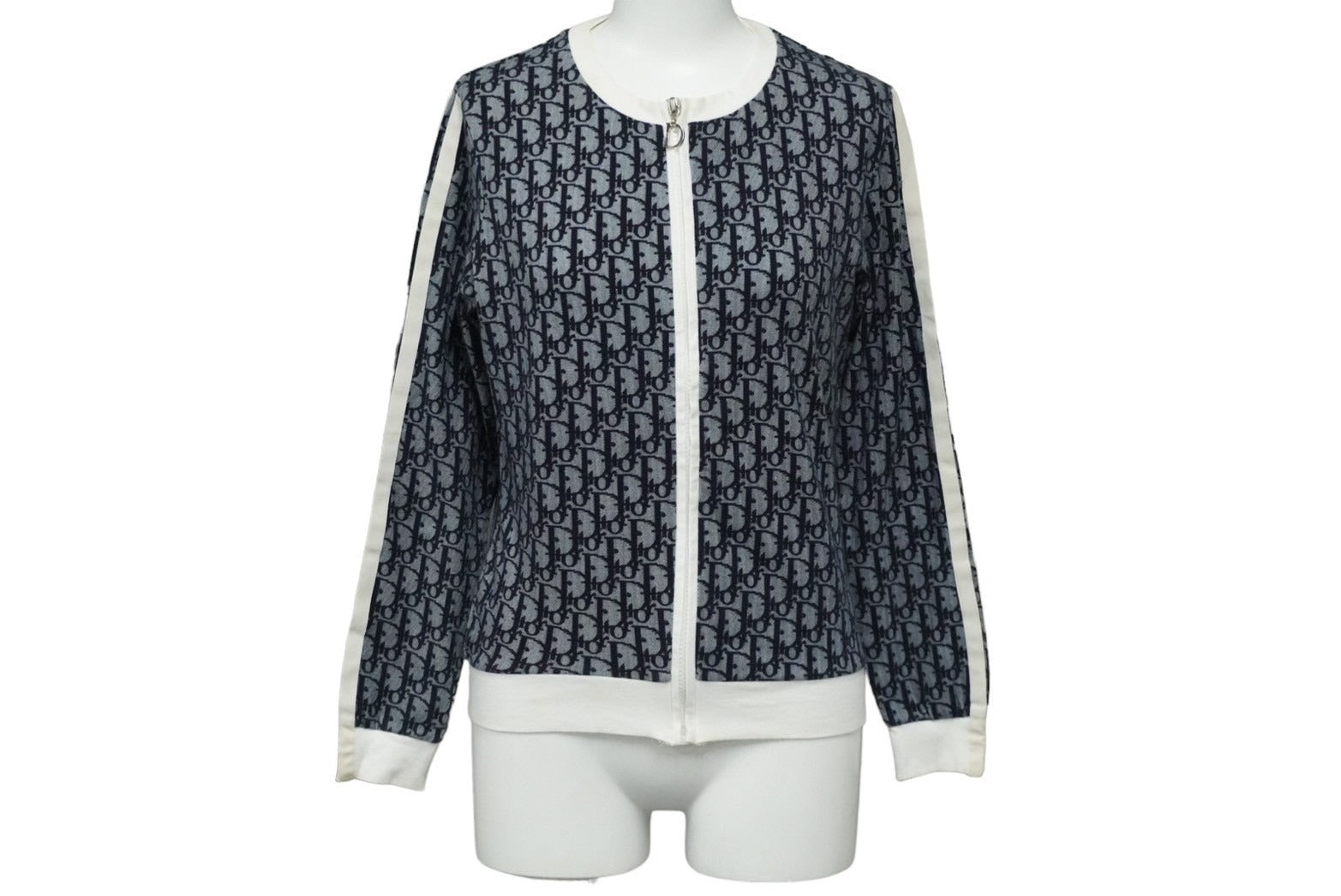 Christian Dior クリスチャンディオール ジャケット トロッター 総柄 ロゴ ネイビー サイズ40 良品 中古 シルバー金具 60316