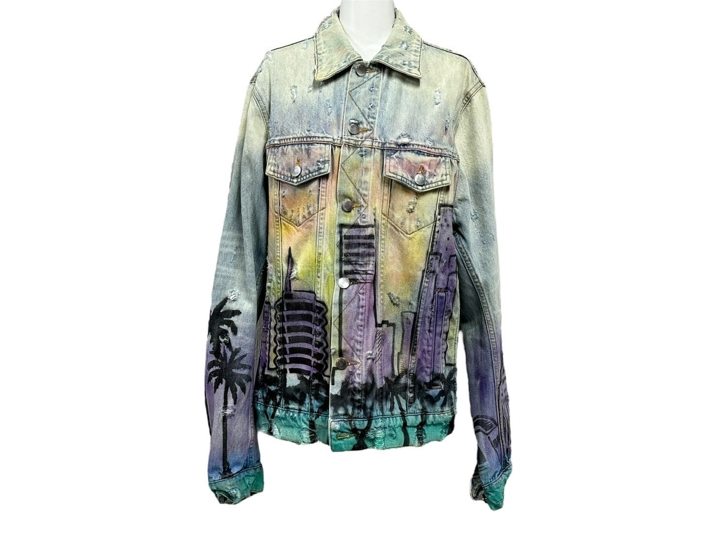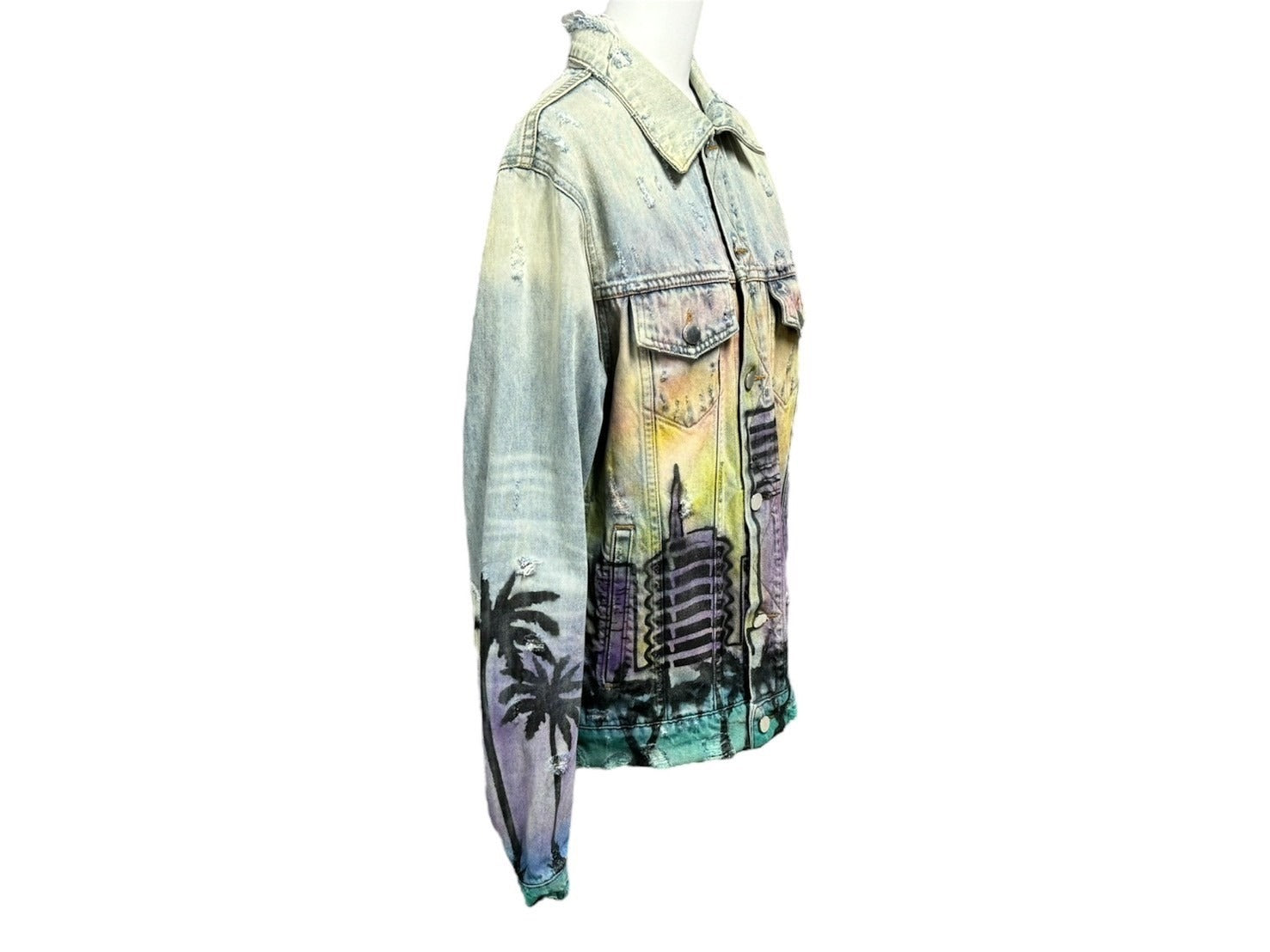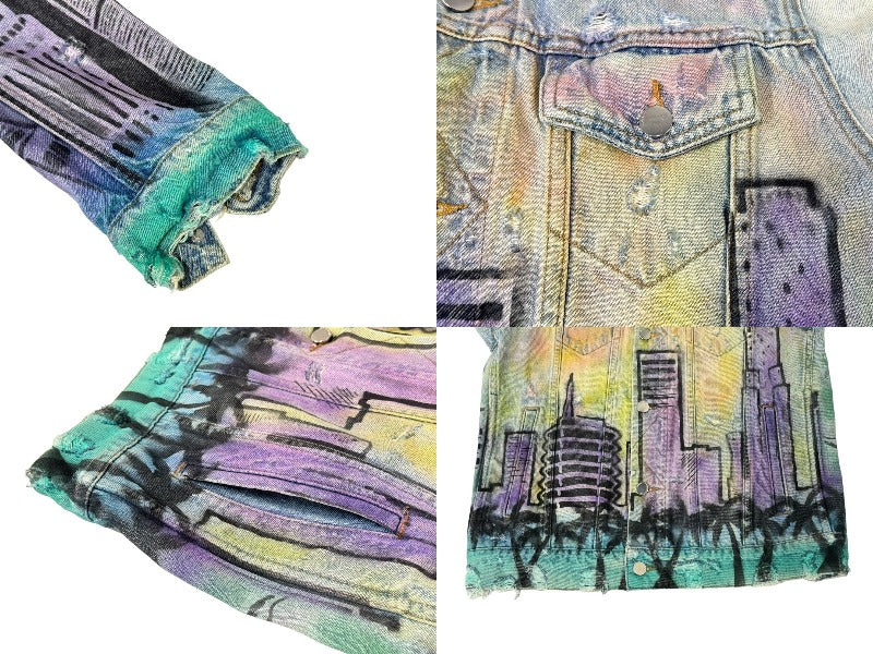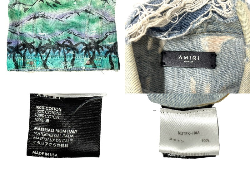 AMIRI アミリ HOLLYWOOD LOGO ハリウッド ロゴ デニムジャケット Gジャン コットン ブルー マルチカラー サイズM 美品 中古 67392