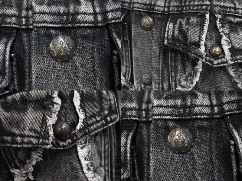 THUGCLUB サグクラブ Tribal Denim Jacket トライバルデニムジャケット コットン グレー シルバー金具 サイズ1 美品 中古 67425
