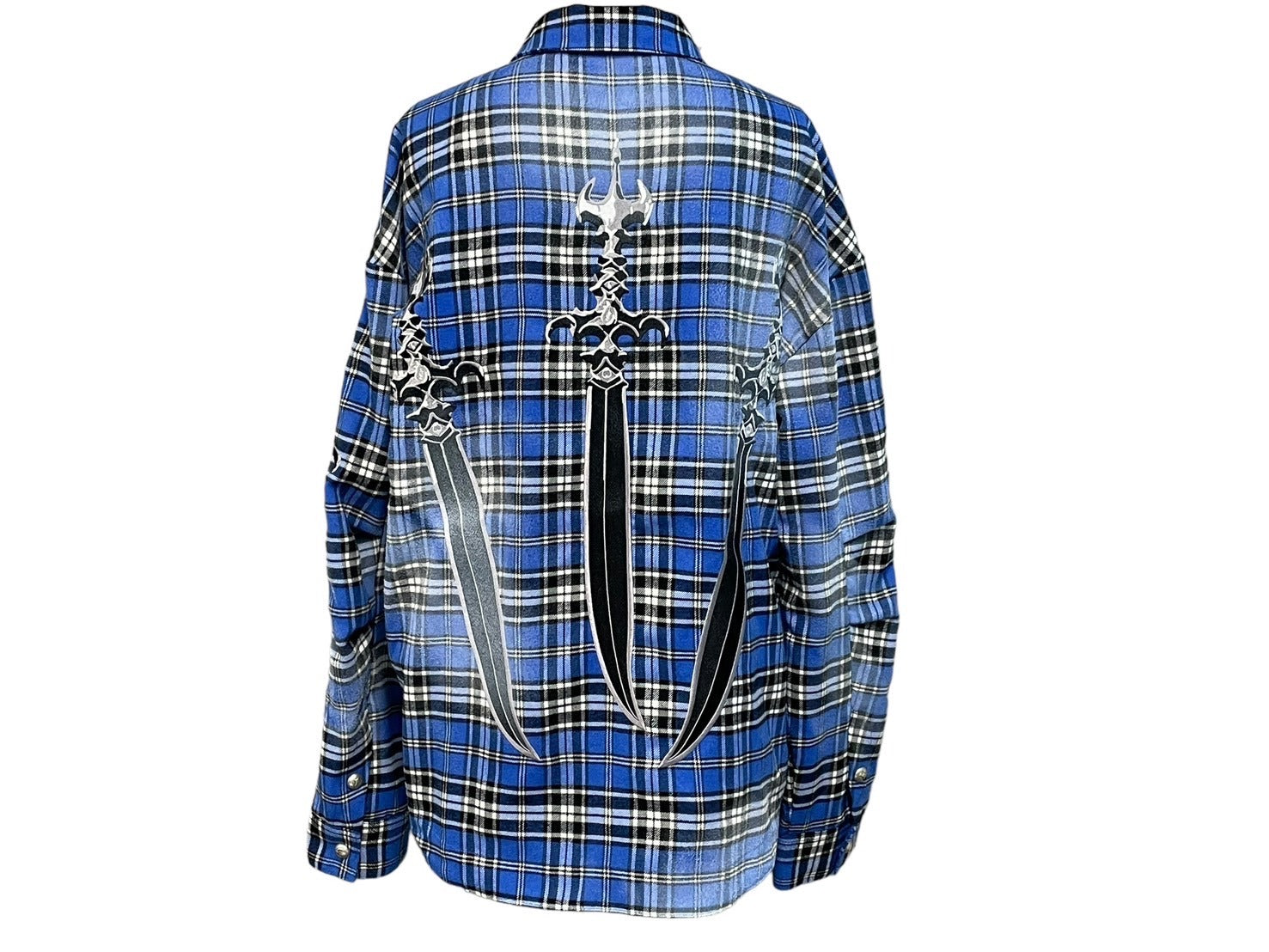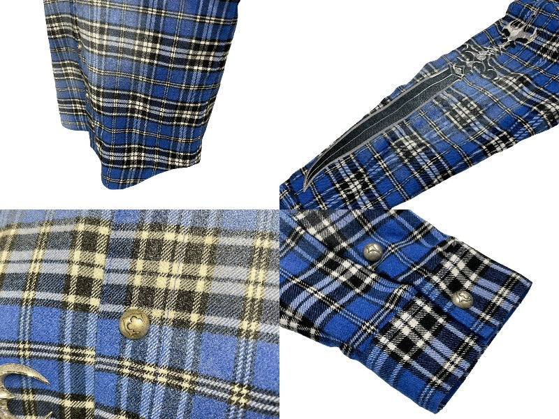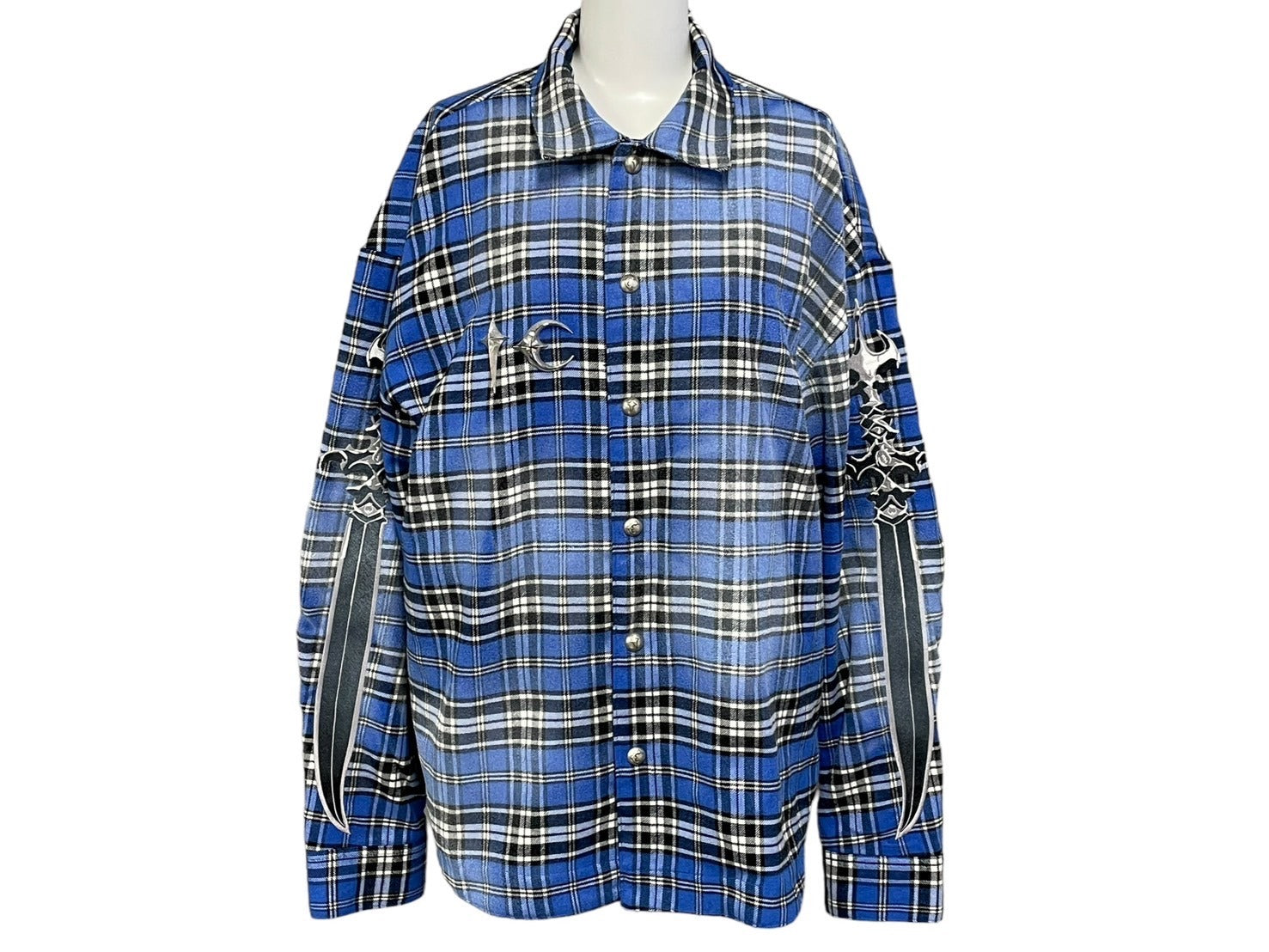 極美品 THUGCLUB サグクラブ ARABSWORD フランネルシャツ 韓国製 ポリエステル レーヨン ポリウレタン ブルー シルバー サイズ1 中古 67438