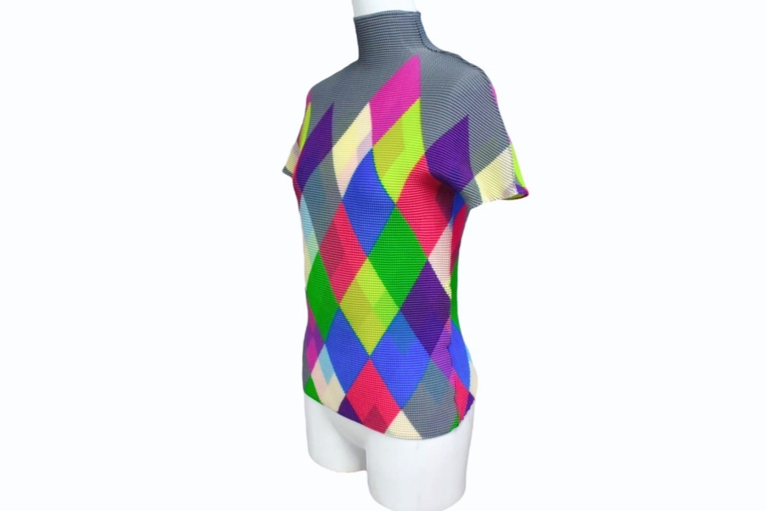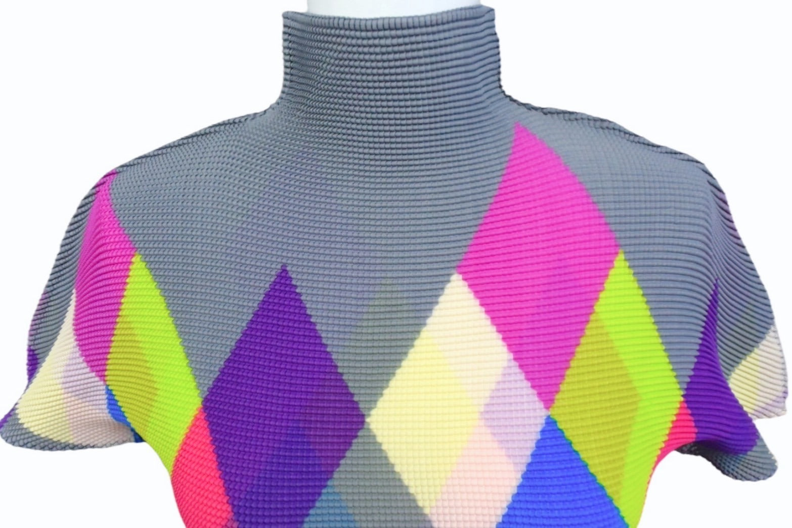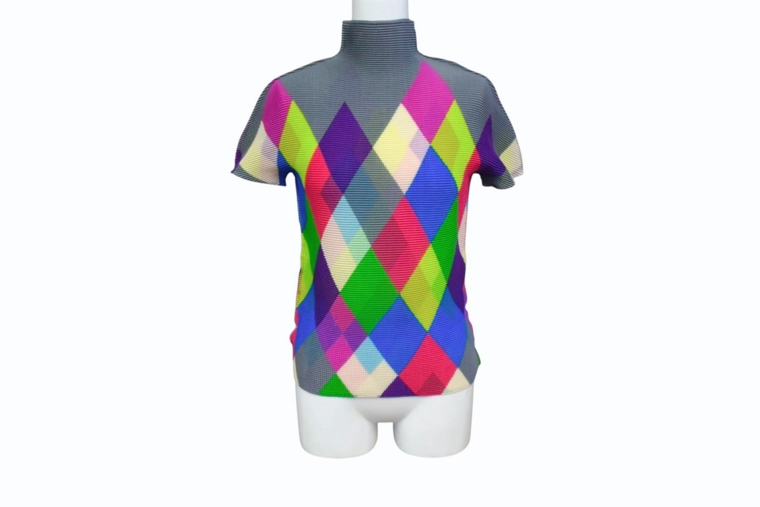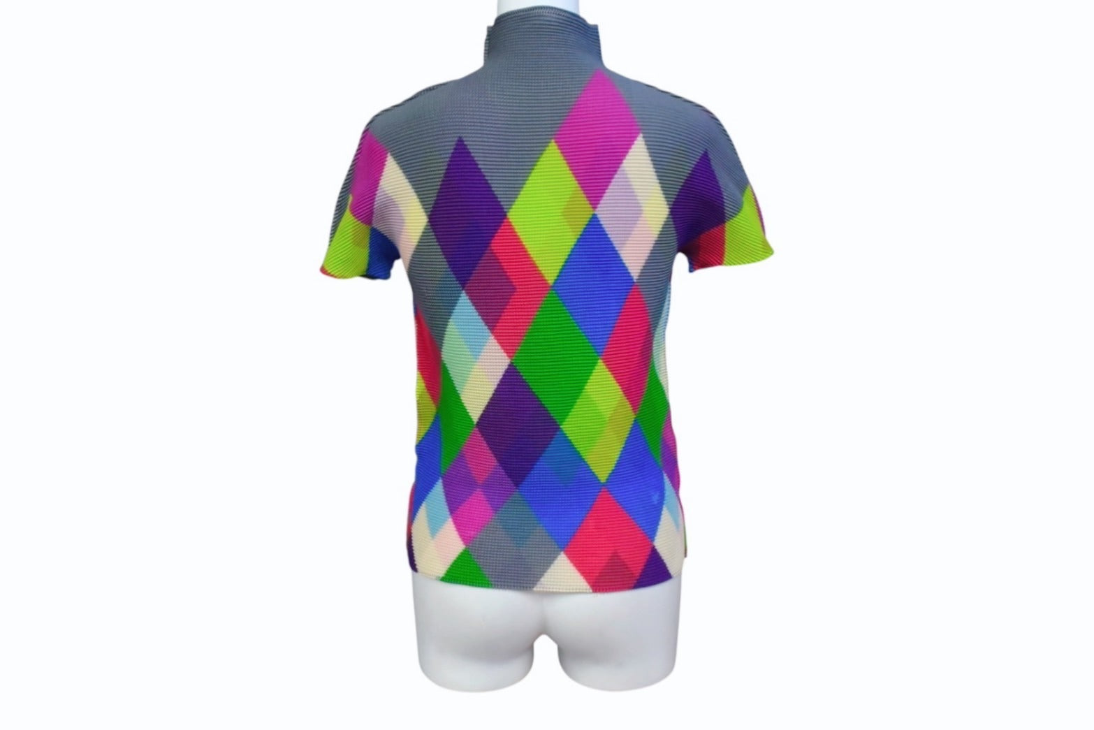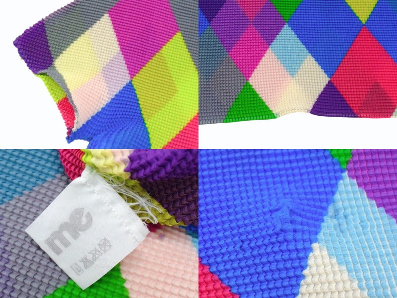 me ISSEY MIYAKE ミー イッセイミヤケ アーガイル柄 プリーツ ハイネック ワッフルブラウス MI71FK245 マルチカラー 良品 中古 4b003192