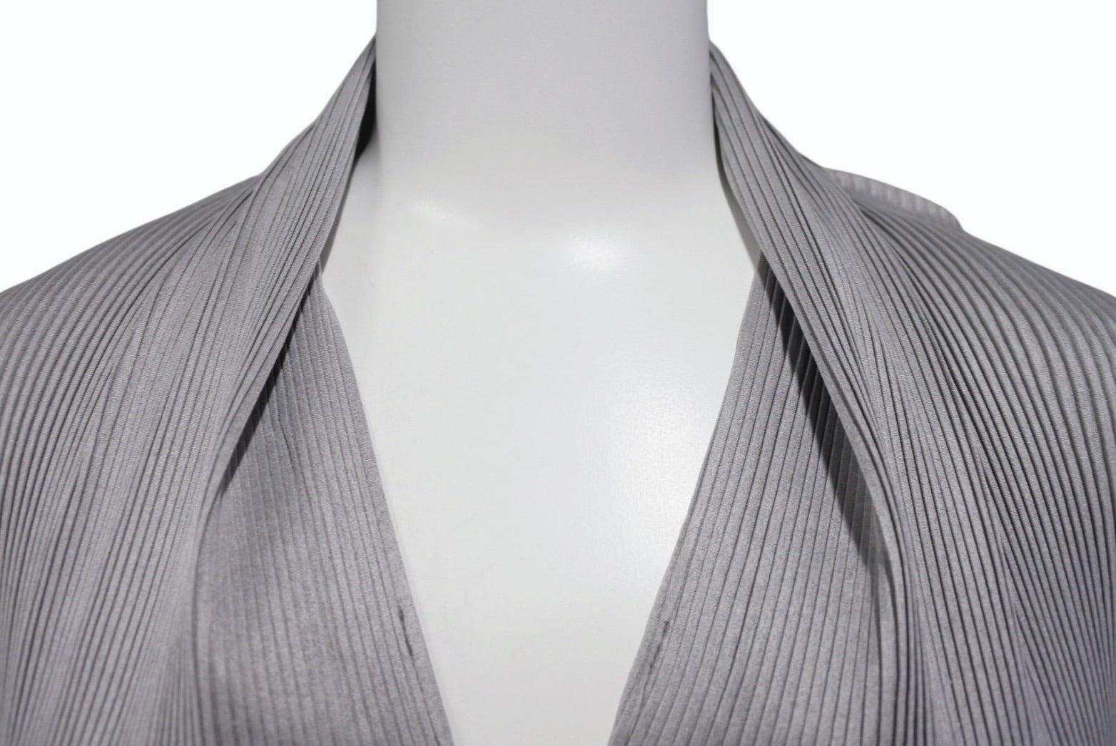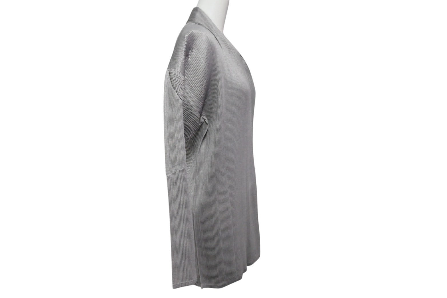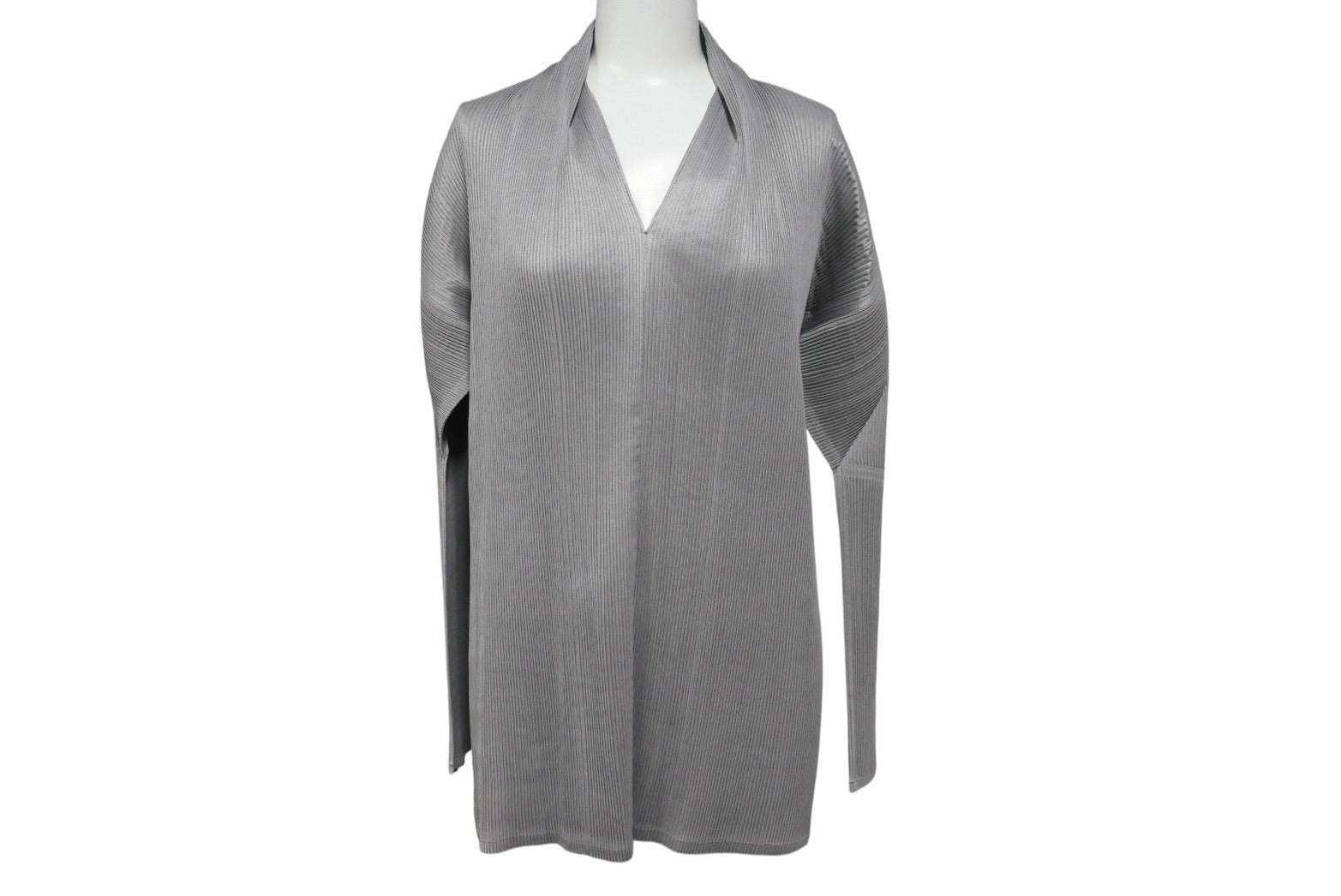 極美品 ISSEY MIYAKE イッセイミヤケ Vネック プリーツ長袖カットソー IM13-FJ025 サイズM グレー 中古 4b004371