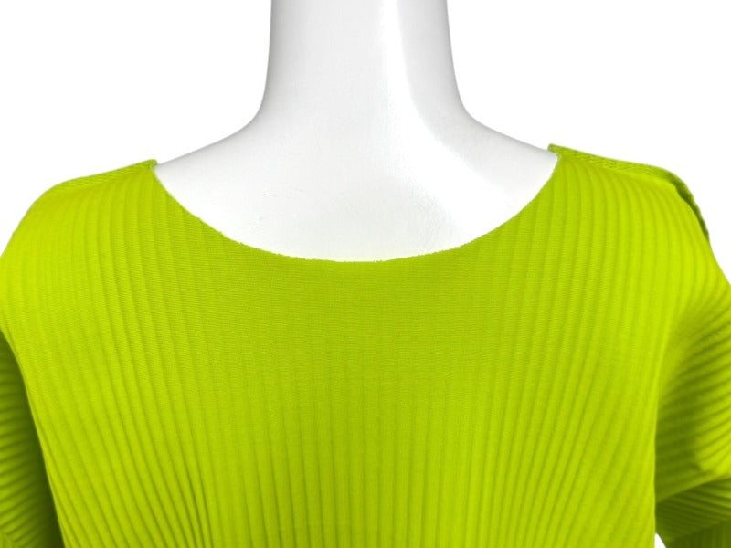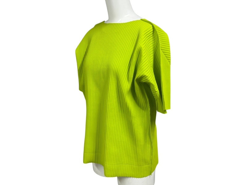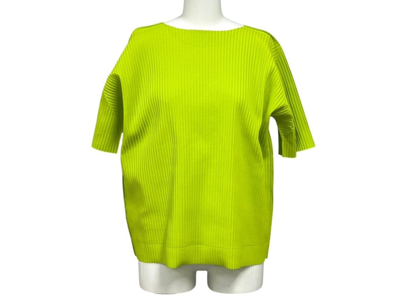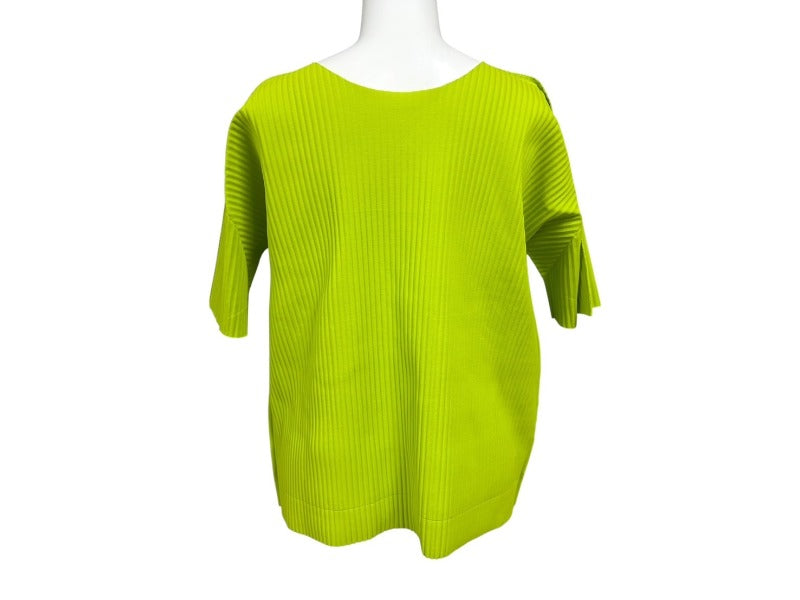me ISSEY MIYAKE ミー イッセイミヤケ プリーツ カットソー MI92KK616 グリーン ポリエステル 美品 中古 4b004376