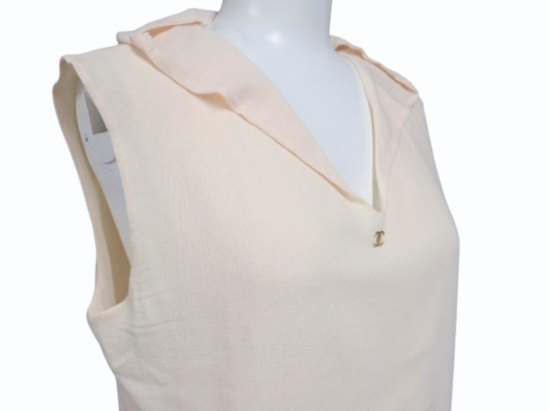 CHANEL シャネル ノースリーブ トップス P12688V07326 サイズ38 ココマーク ベージュ セーラー型 美品 中古 4b004451