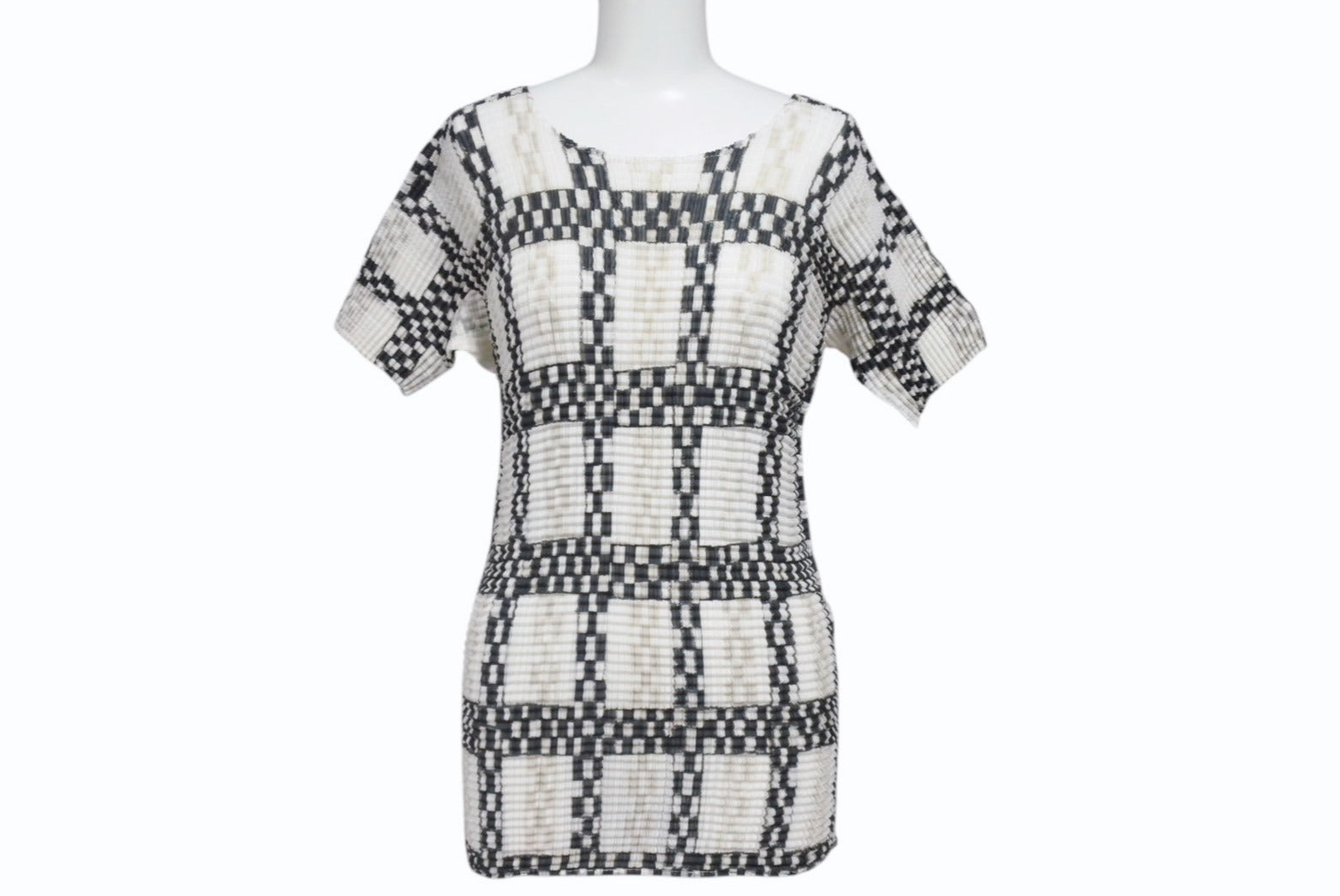 極美品 ISSEY MIYAKE ME イッセイミヤケ スリーブ カットソー IM71FJ945 ブラック ホワイト マルチカラー 中古 4b004465