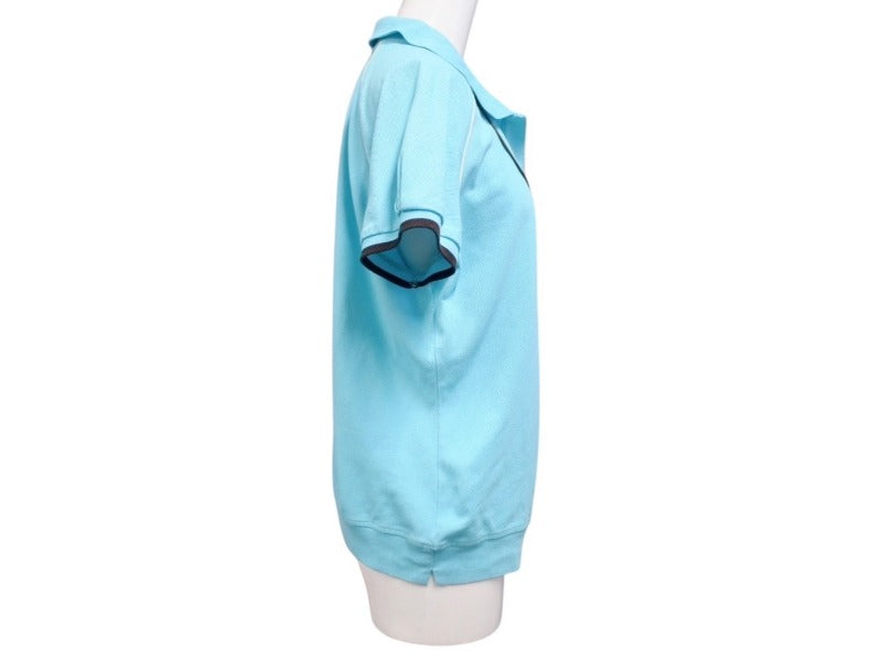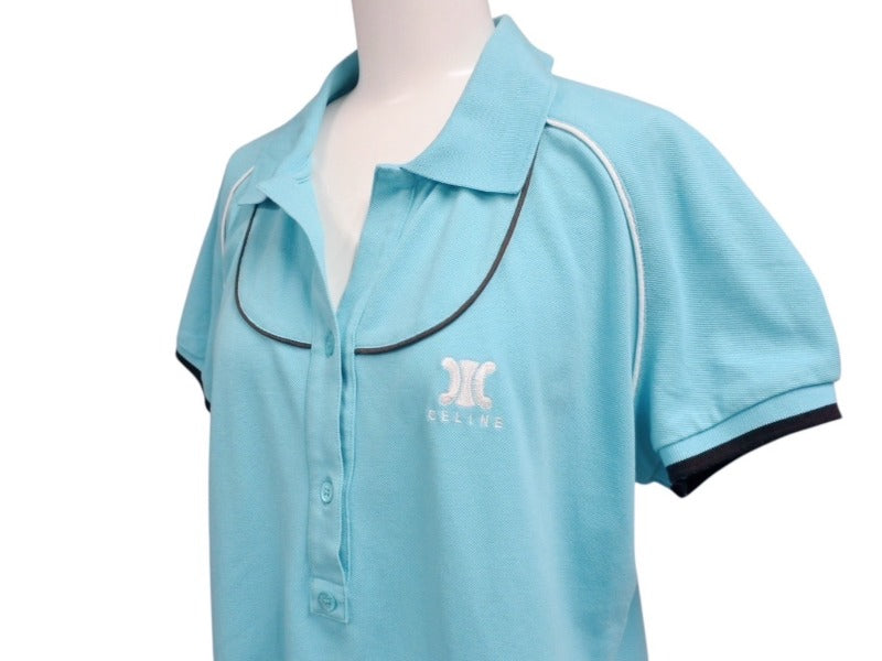 CELINE セリーヌ 半袖ポロシャツ トップス 2 9A14 サイズXL ブルー ブラウン ホワイト ロゴ刺繍 美品 中古 4b004473