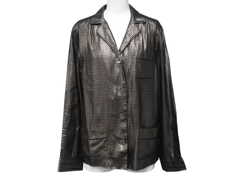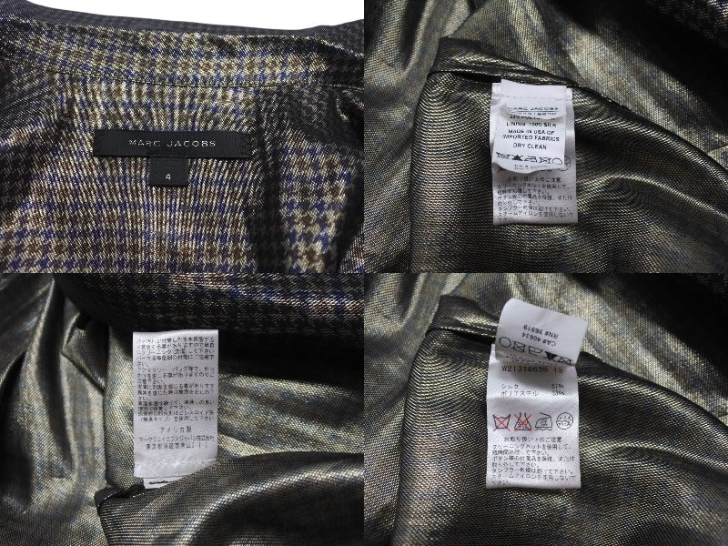 MARC JACOBS マークジェイコブス 13FW メタリックチェックパジャマシャツ W21316630 千鳥格子 シルク サイズ4 美品 中古 4b006764