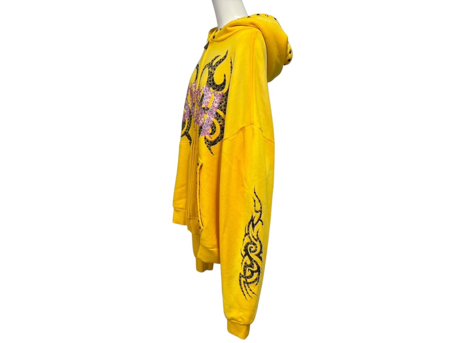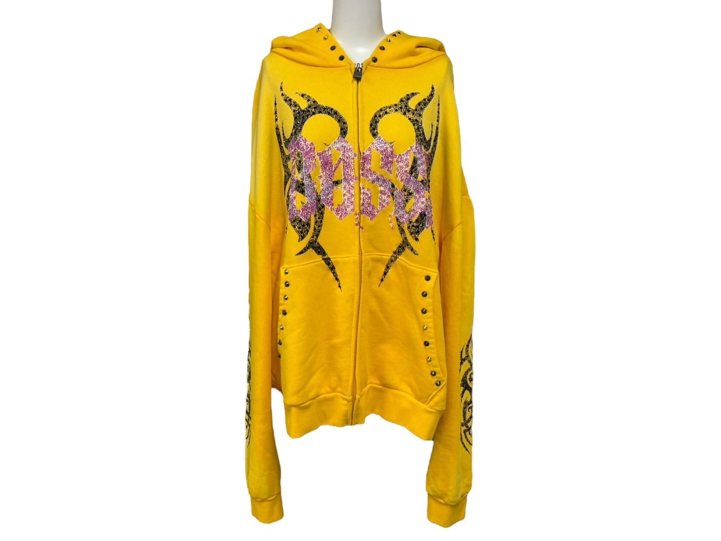 トライバルプリントやラインストーン、スタッズなど高級感のあるフーディーです。