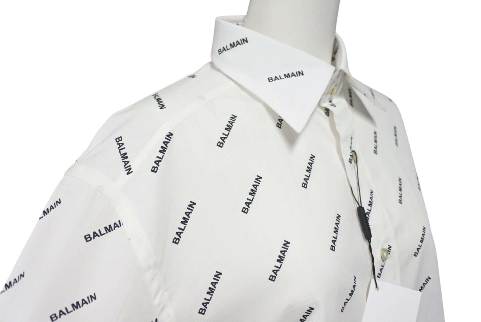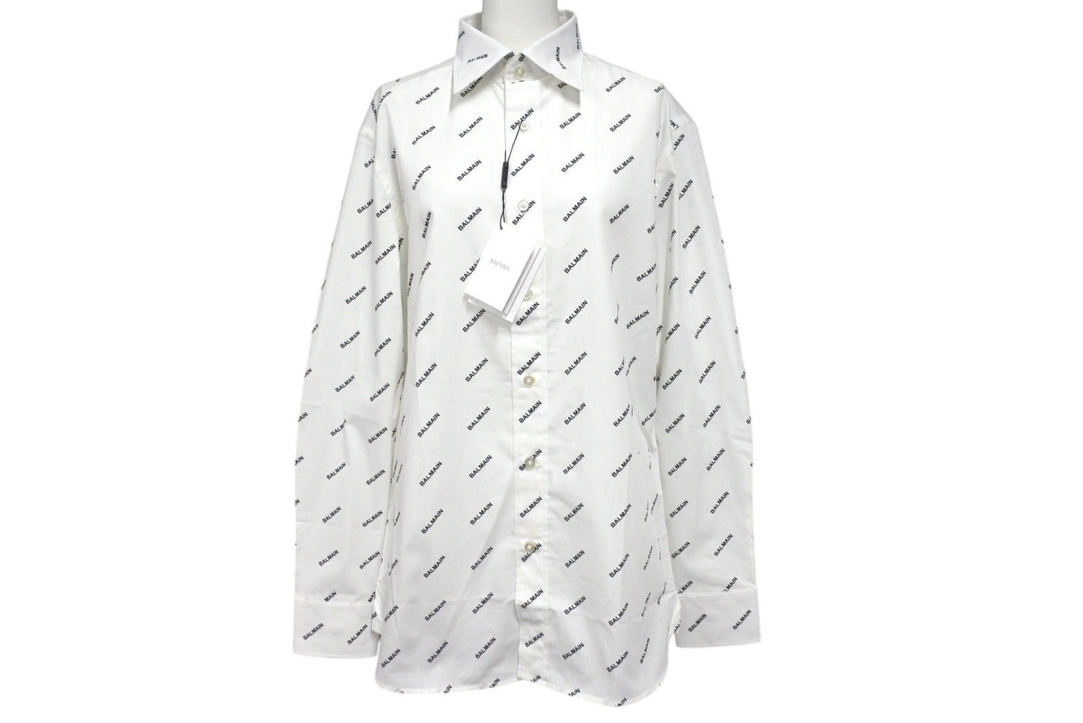 シンプルな白シャツに総柄ロゴがアクセントになっておりとても魅力的なデザインです。