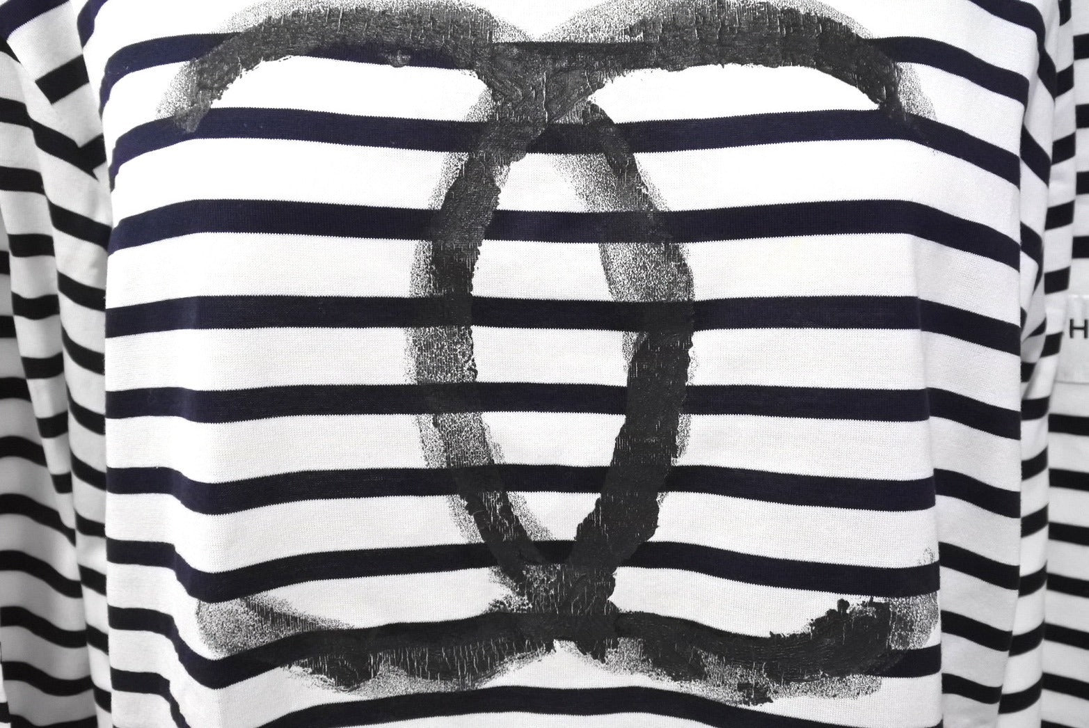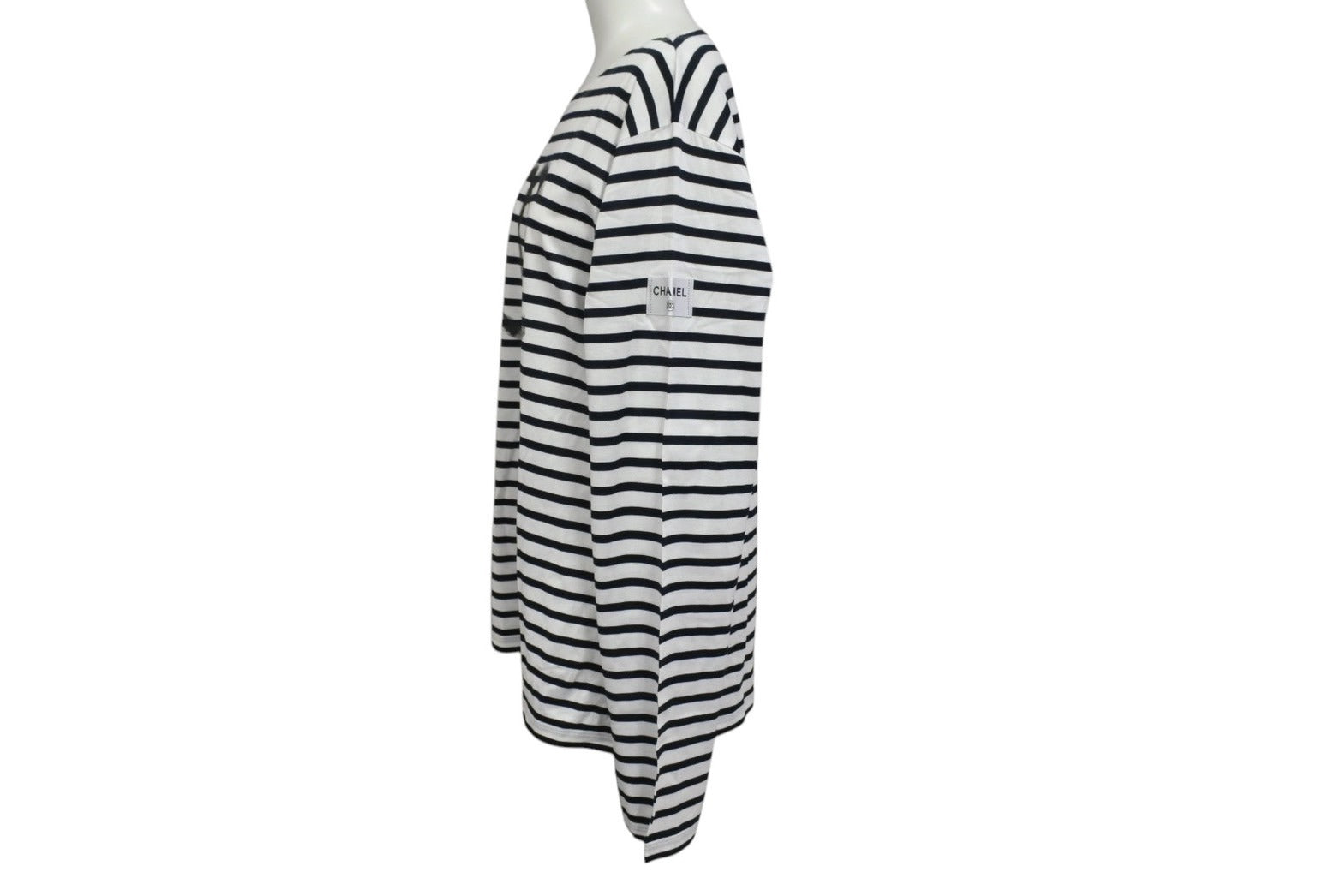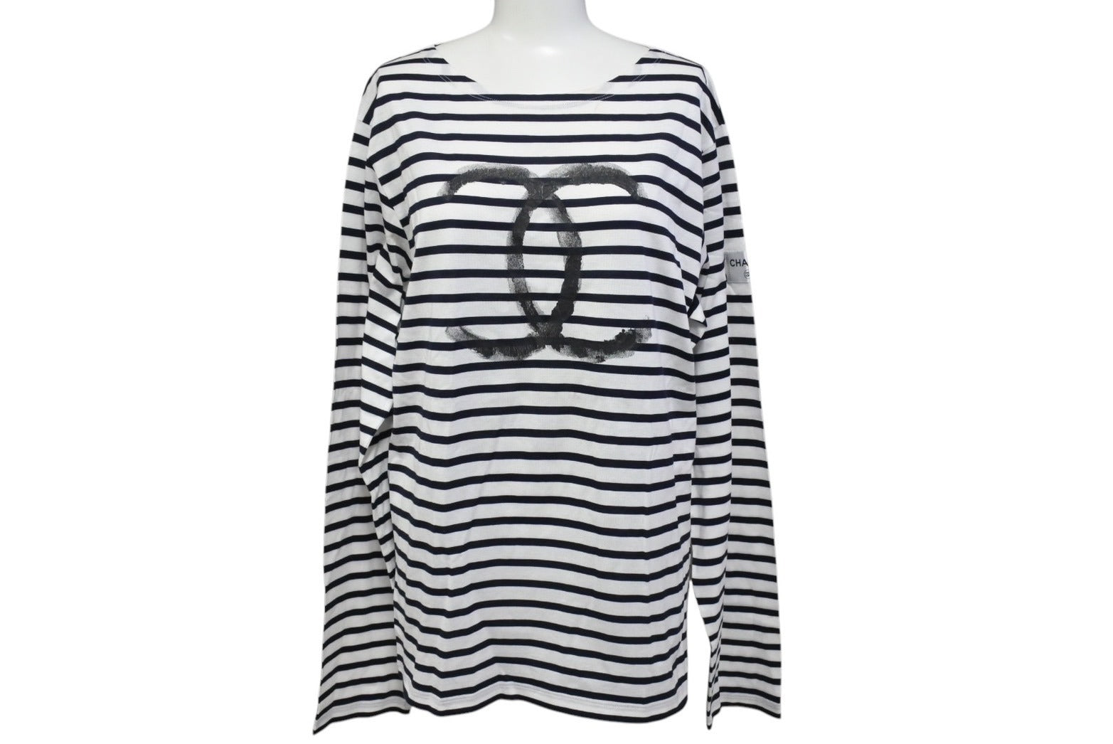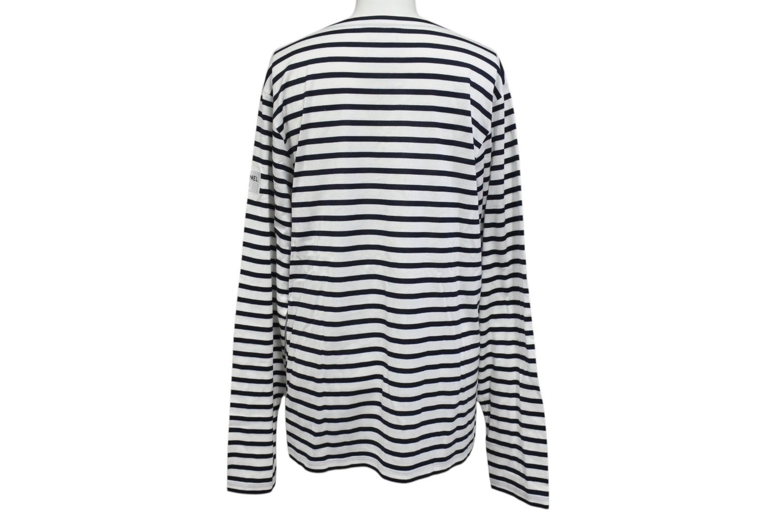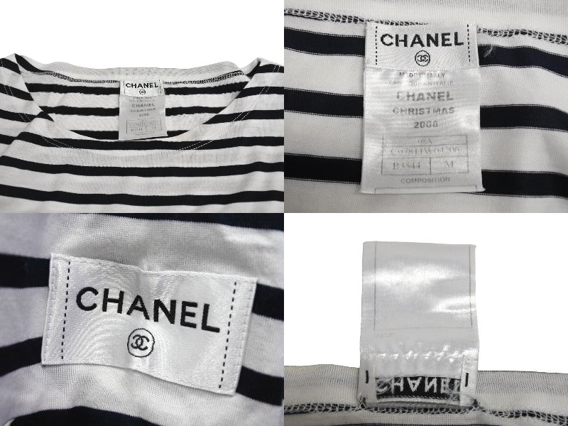CHANEL シャネル 長袖Tシャツ C07811W04206 サイズM 2008年 クリスマス限定 ココマーク ボーダー ホワイト 美品 中古 4c070293