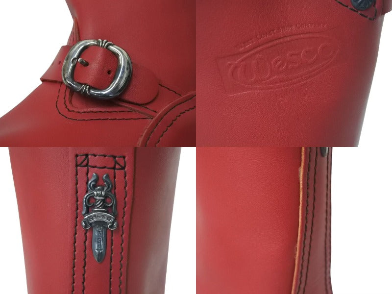 極美品 CHROME HEARTS クロムハーツ エンジニアブーツ WESCOコラボ ガンスリンガー サイズS レッド 中古 4c073430