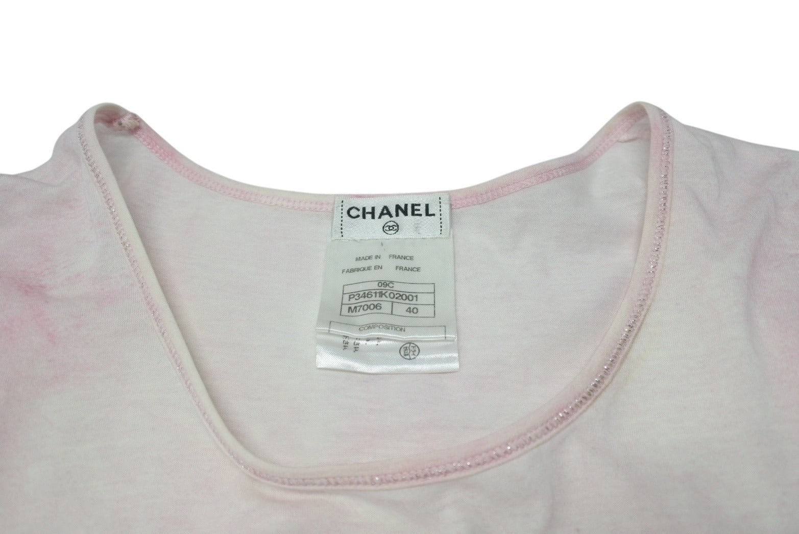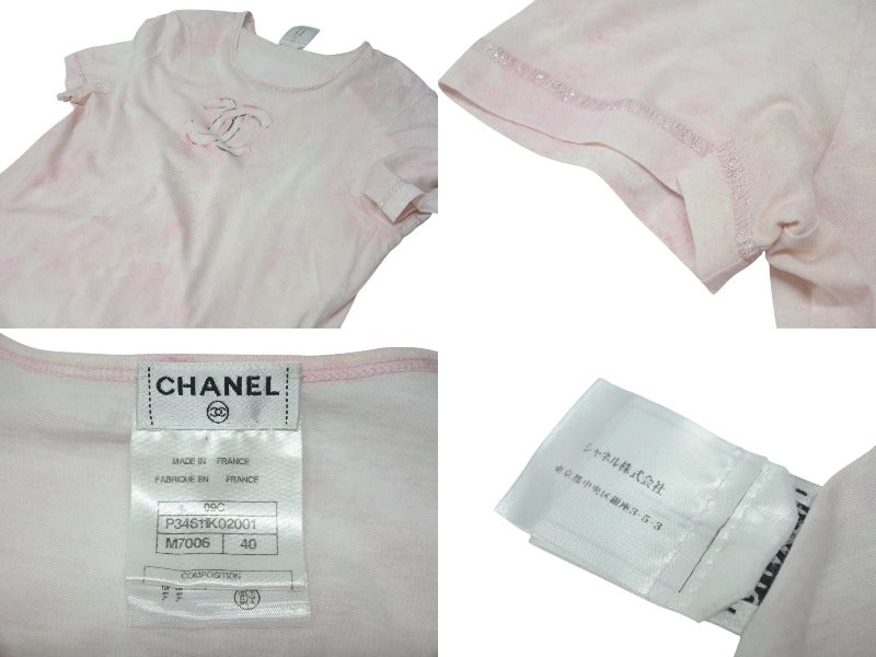 CHANEL シャネル Tシャツ ココマーク タイダイ柄 P34611K02001 フランス製 コットン ピンク 34 美品 中古 4c075633