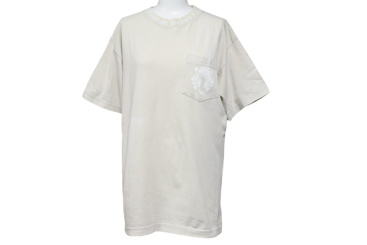 CHROME HEARTS クロムハーツ 半袖Tシャツ ボルドー ダガー 首ロゴ コットン ベージュ サイズM 美品 中古 50286