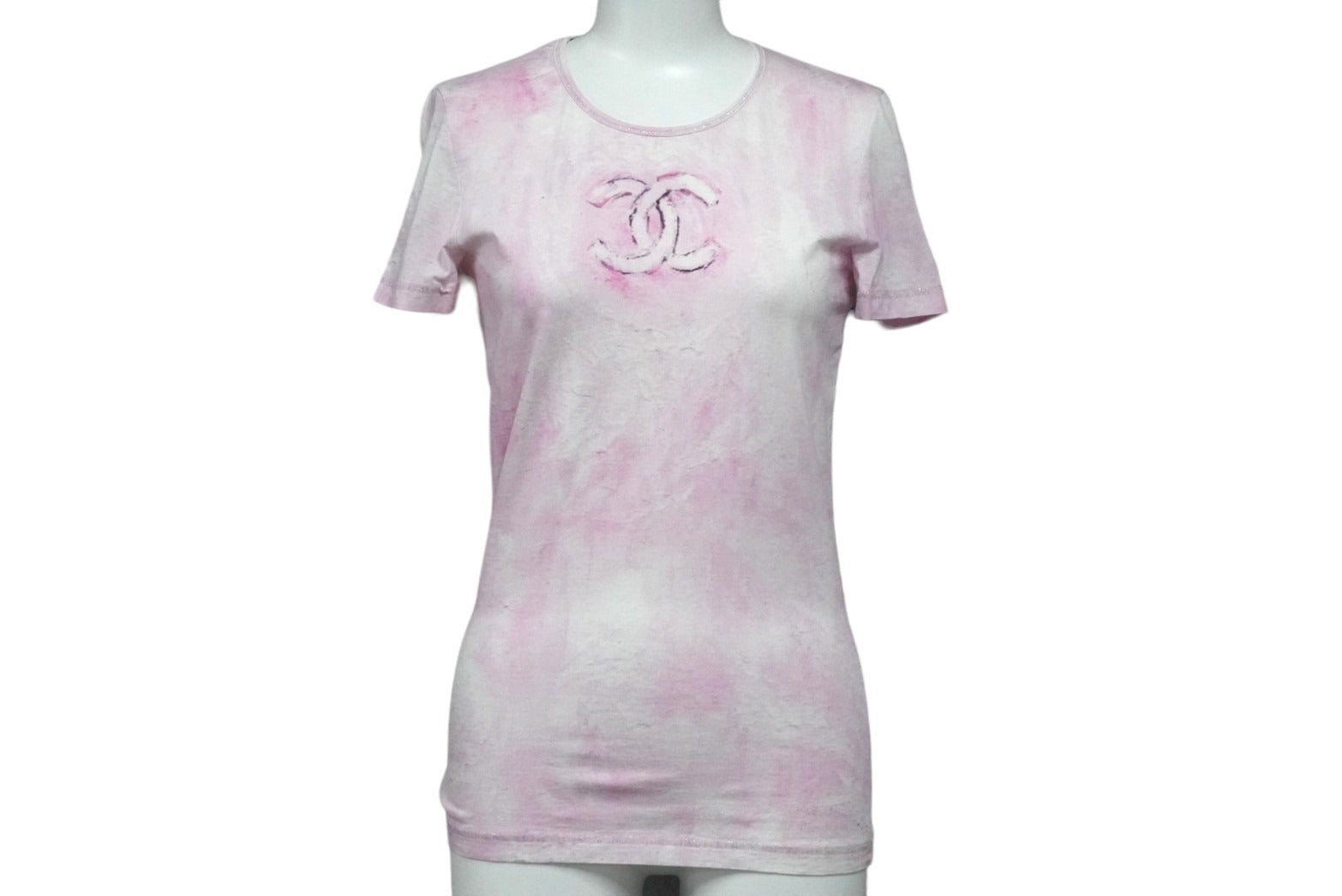 CHANEL シャネル 半袖 Tシャツ ココマーク タイダイ柄 P34611K02001 フランス製 コットン エラスタン ピンク 34 美品 中古 53333