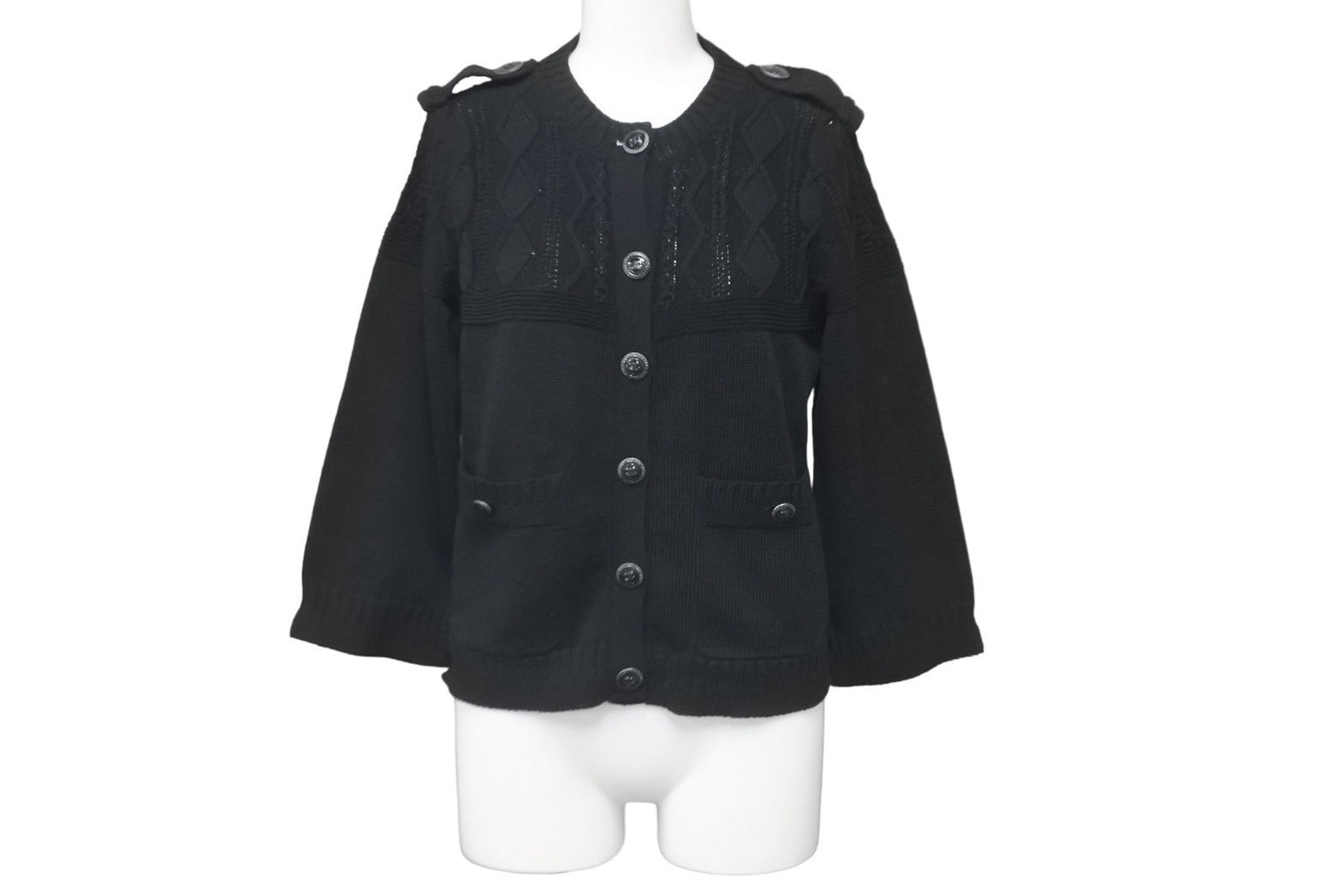 大きく豪華なCC ココマークボタンが10個も付くエポレットスタイルの大変魅力的なニットジャケット、カーディガンでございます。