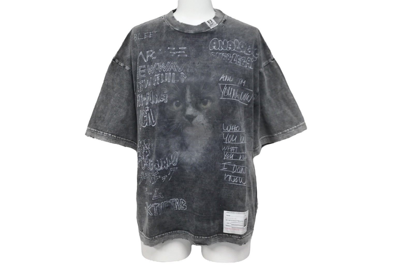 新品未使用 Maison MIHARA YASUHIRO メゾン ミハラヤスヒロ ブリーチ 半袖Tシャツ ブラック 猫 サイズ36 BI2TS633 中古 60467