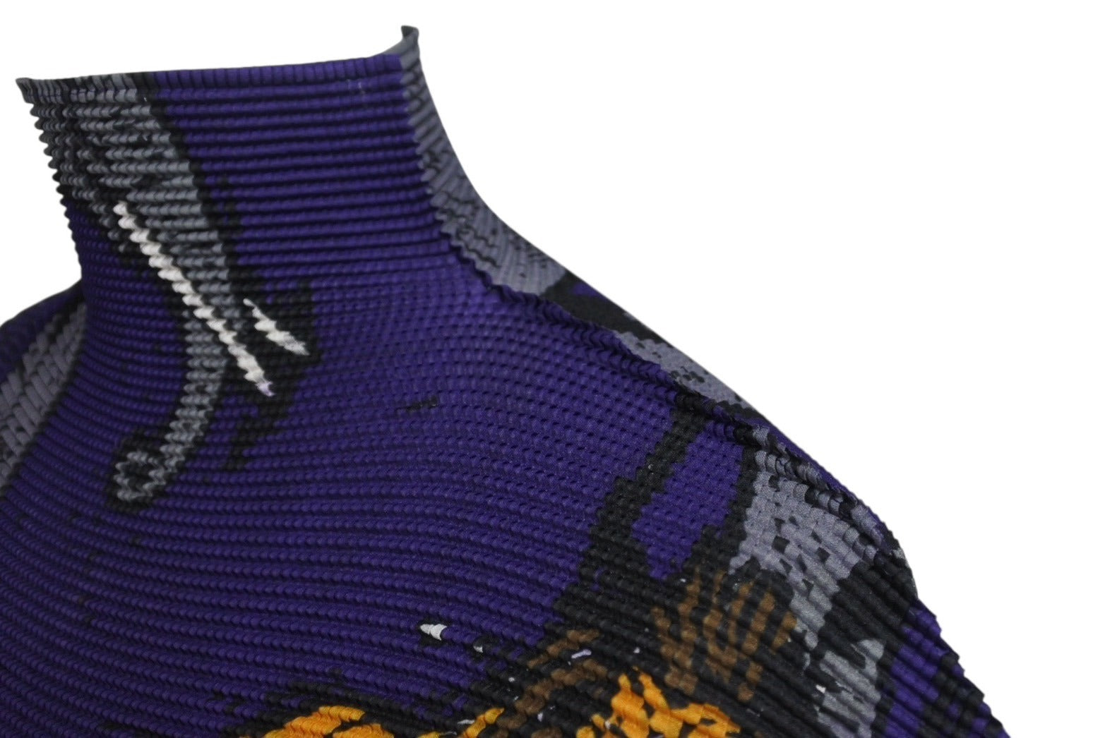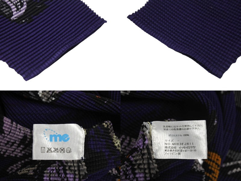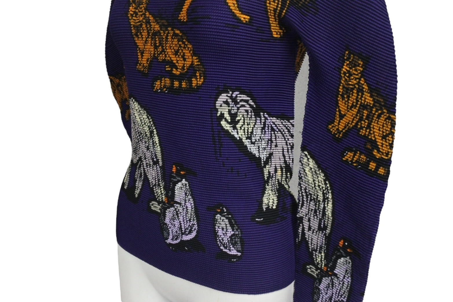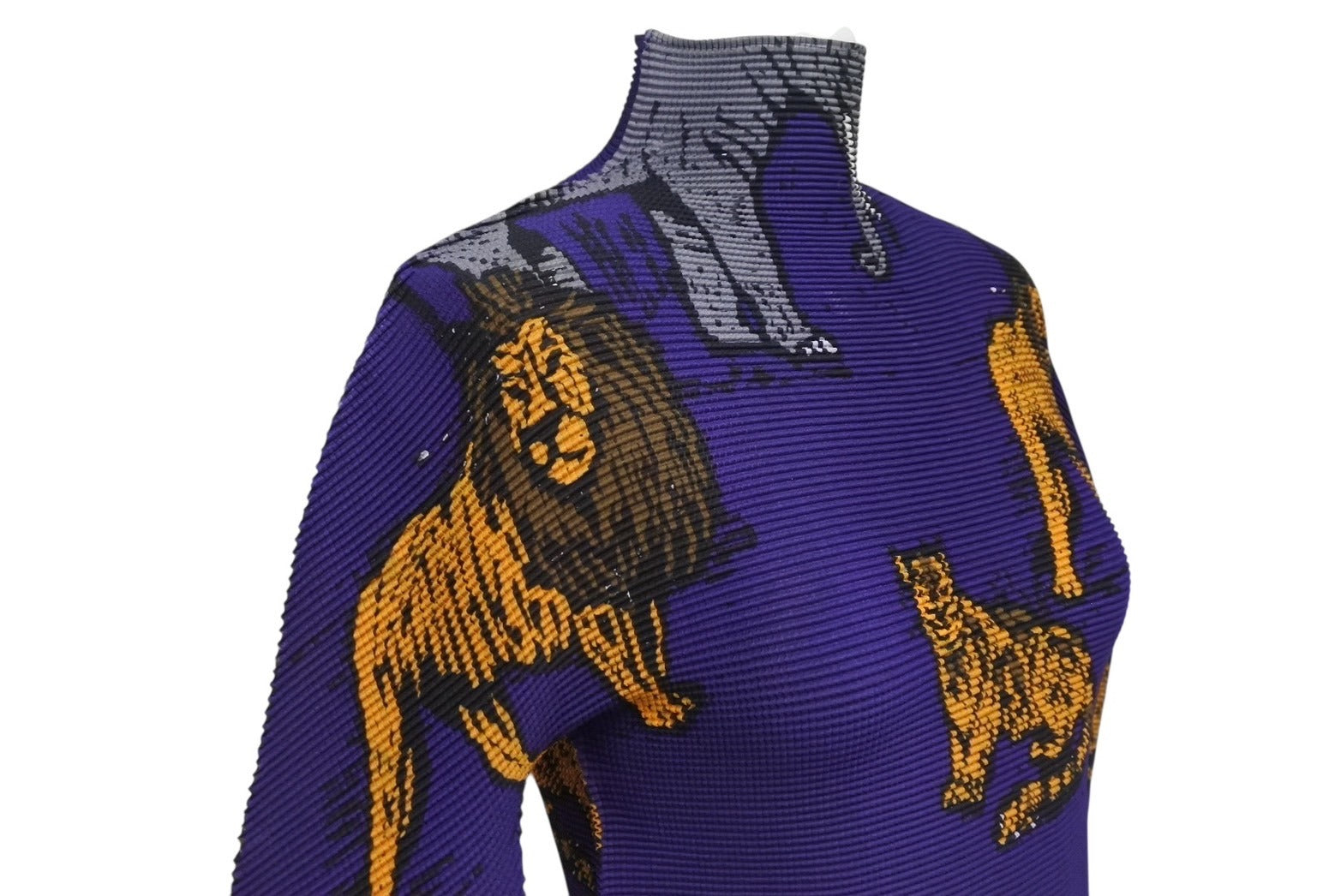 極美品 me ISSEY MIYAKE ミー イッセイミヤケ 長袖トップス MI83FJ611 フリーサイズ プリーツ ハイネック パープル アニマル柄 中古 4b001617