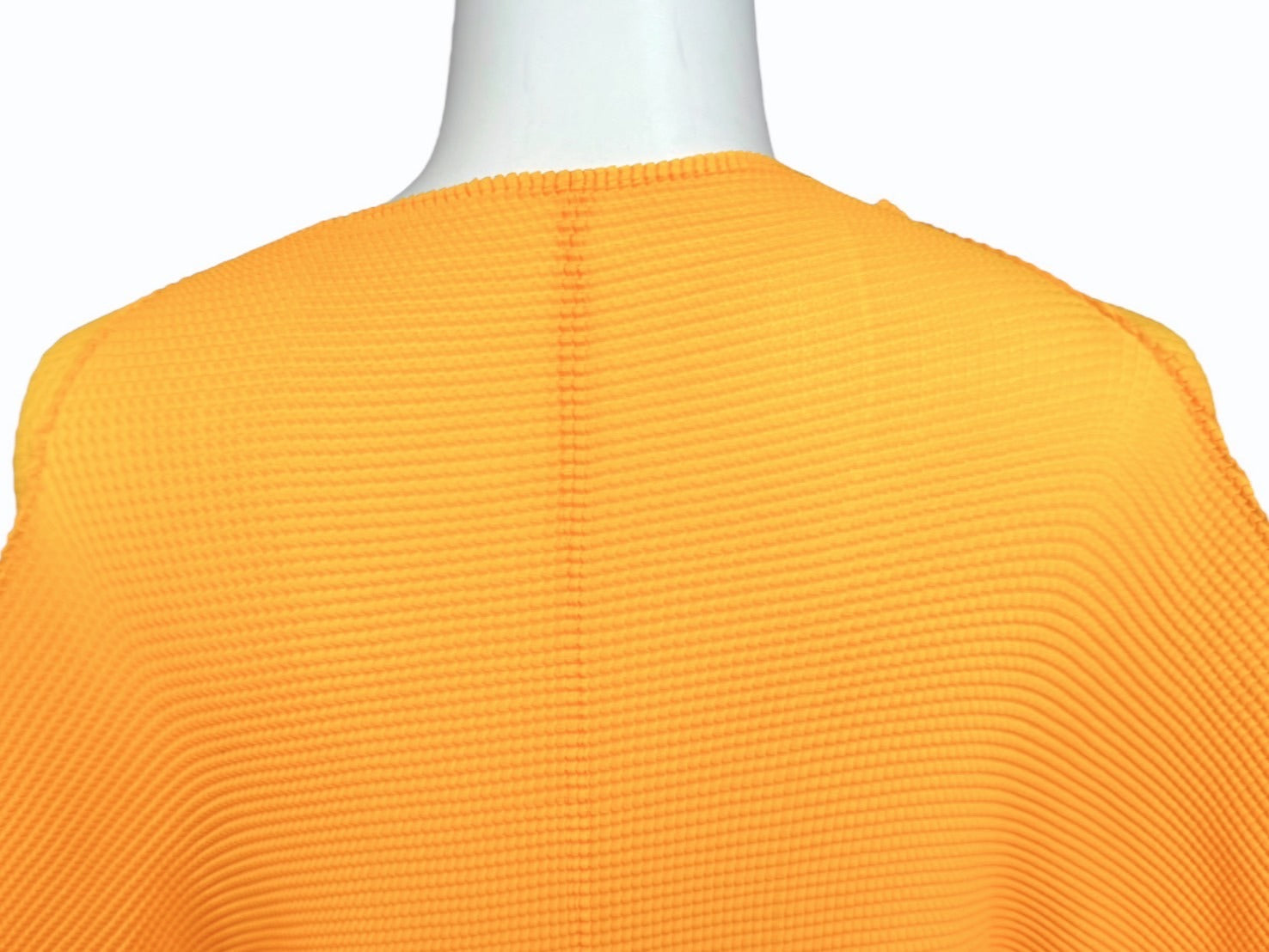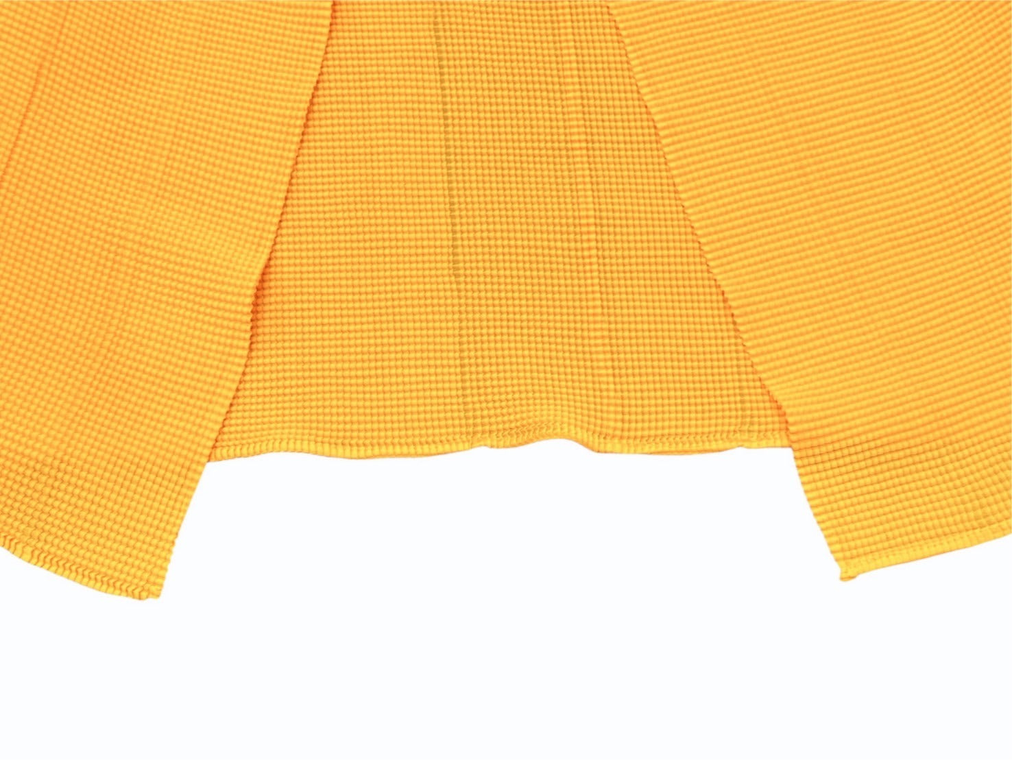縦と横にプリーツのかかった、伸縮性があるストレッチプリーツのハイネック長袖トップス。