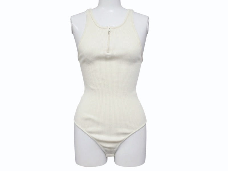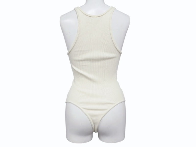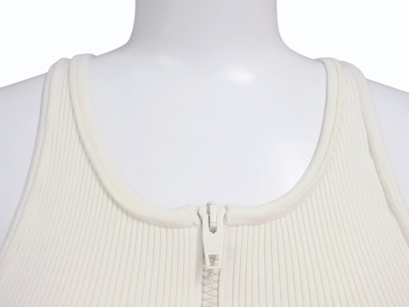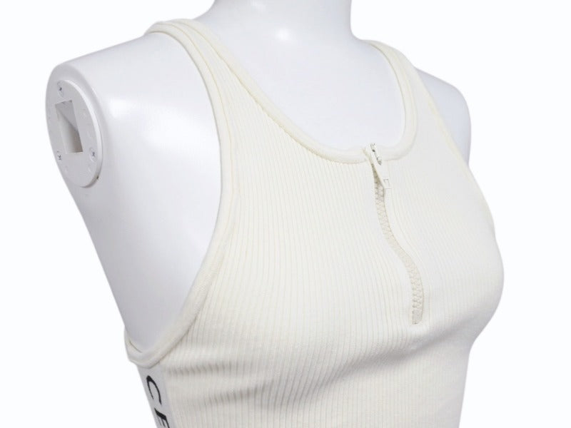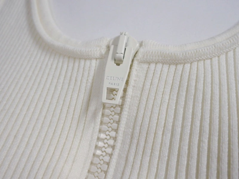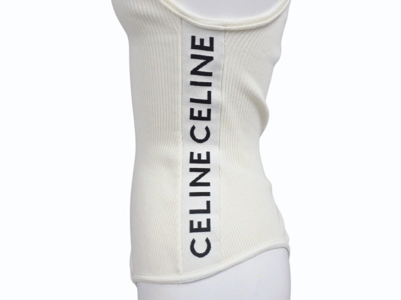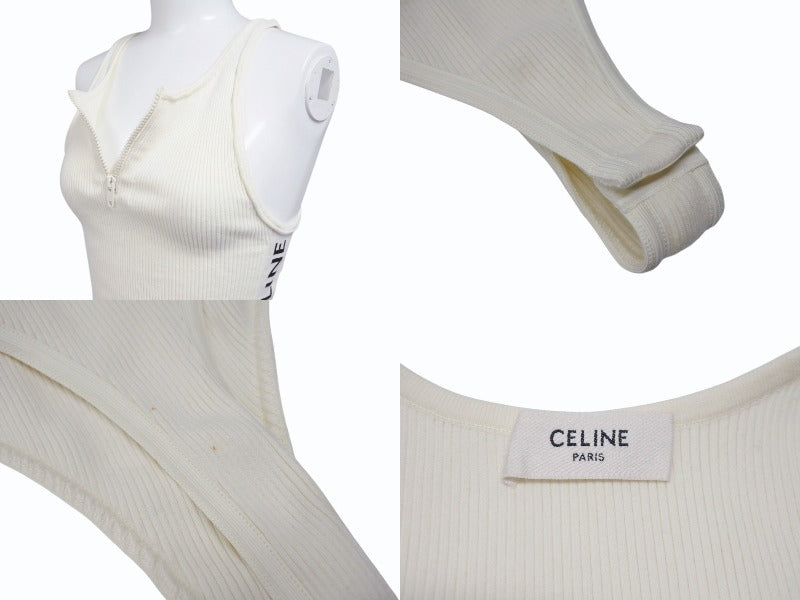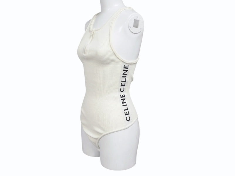 CELINE セリーヌ ボディスーツ トップス 2A08V372N ハーフジップ サイドロゴ コットンリブ アイボリー 美品 中古 4b004935