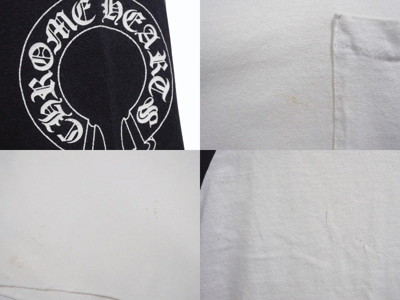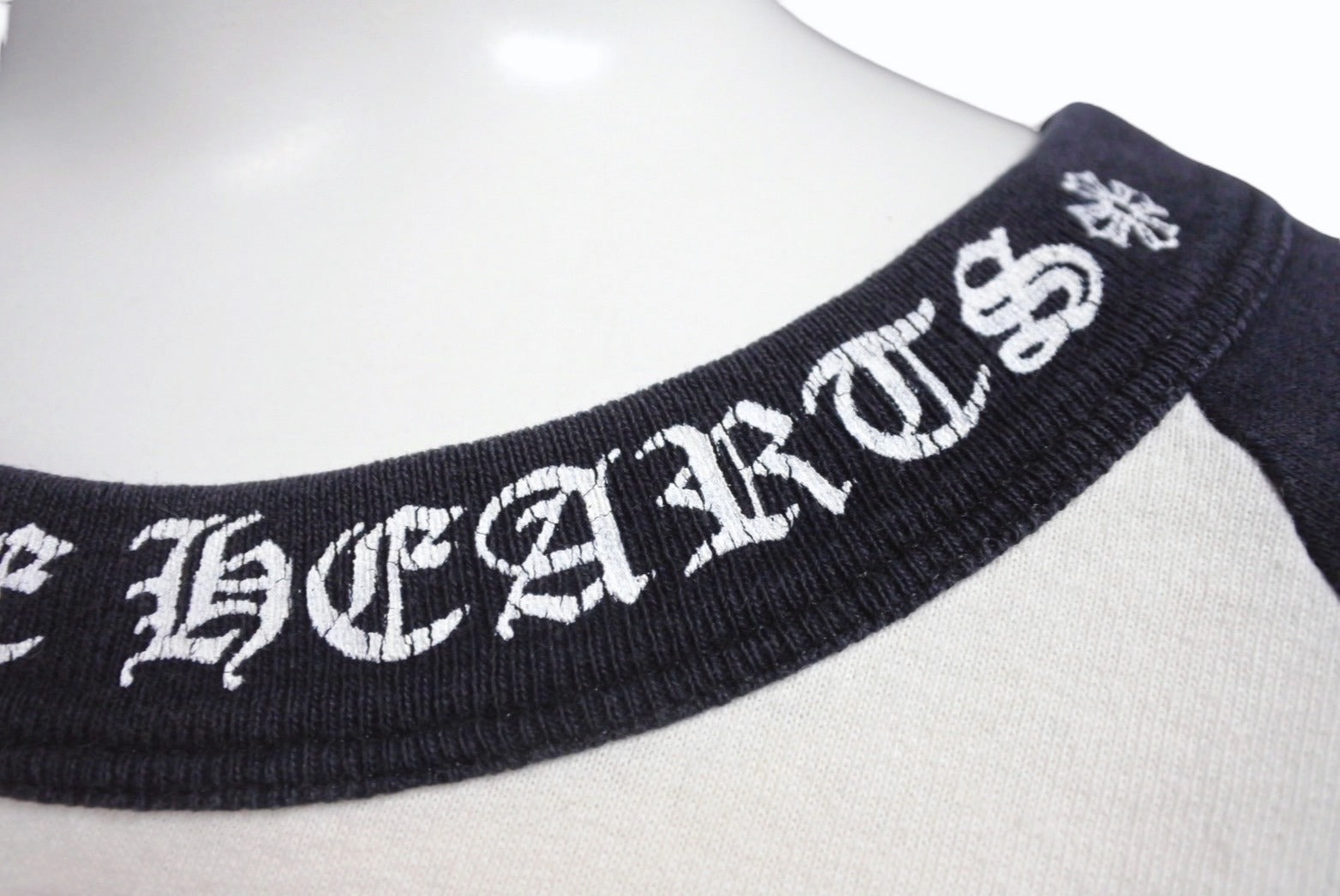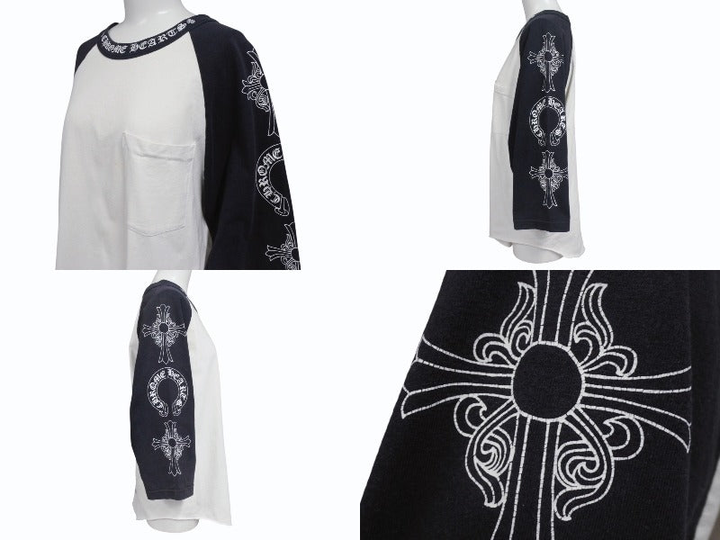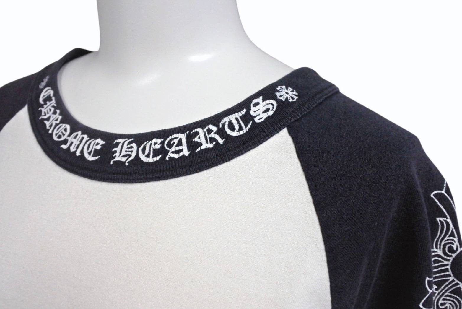 CHROME HEARTS クロムハーツ ラグラン 七分袖Tシャツ サイズM ホワイト ブラック ネックロゴ オールドクロス ホースシュー 良品 中古 4b005660