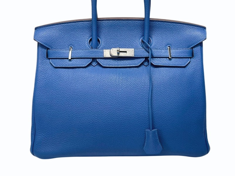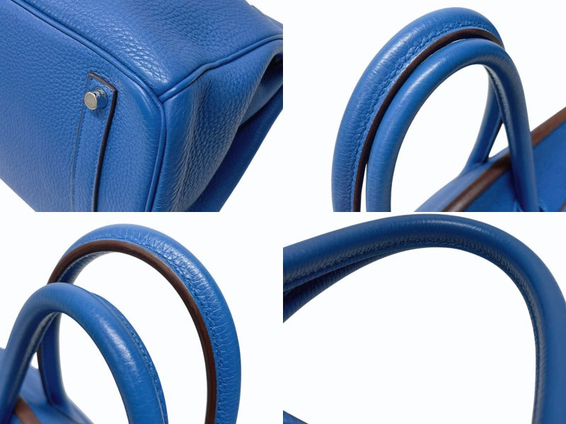 極美品 HERMES エルメス BIRKIN バーキン35 ミコノス シルバー金具 トリヨンクレマンス ハンドバッグ □O刻印 中古 4b005067