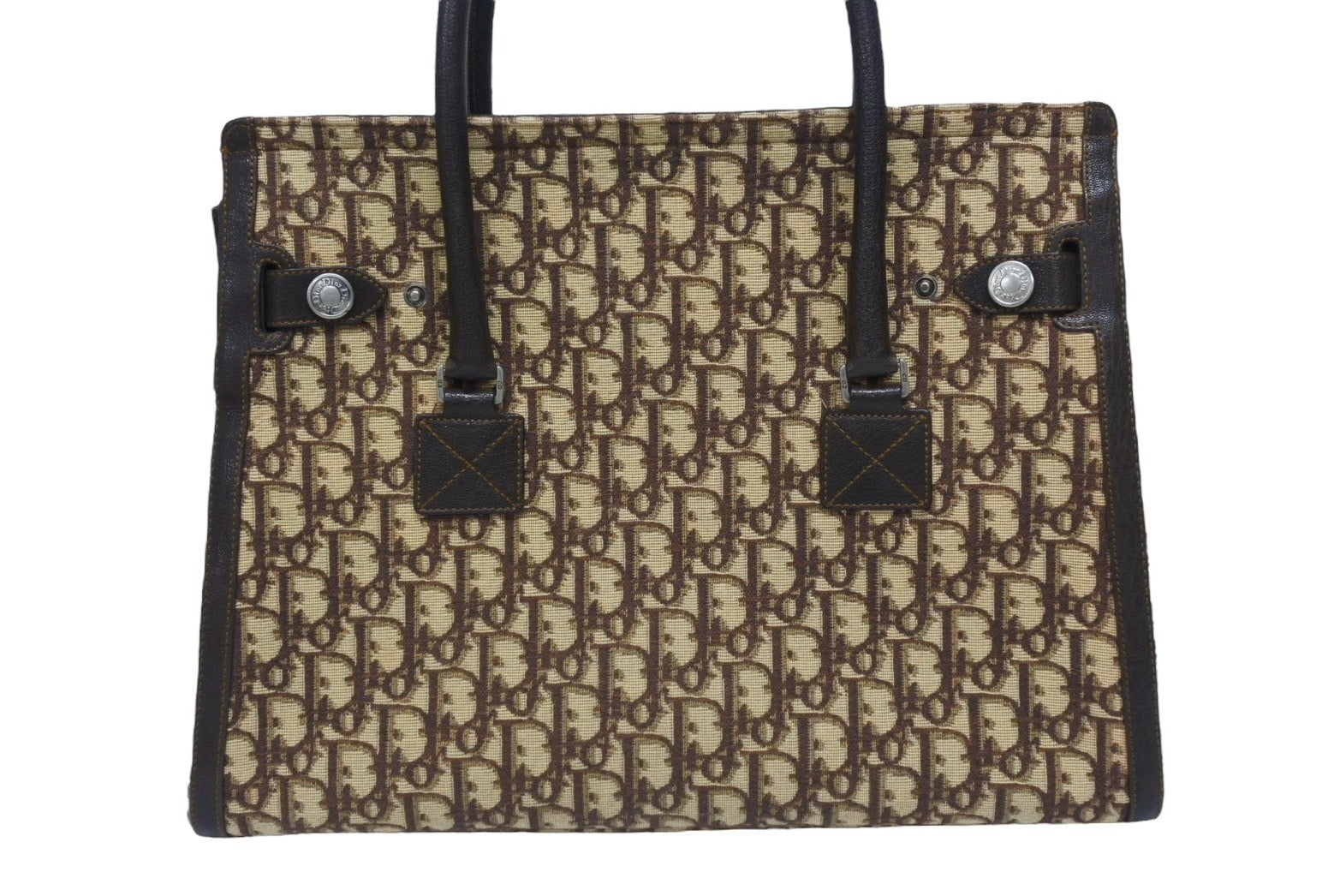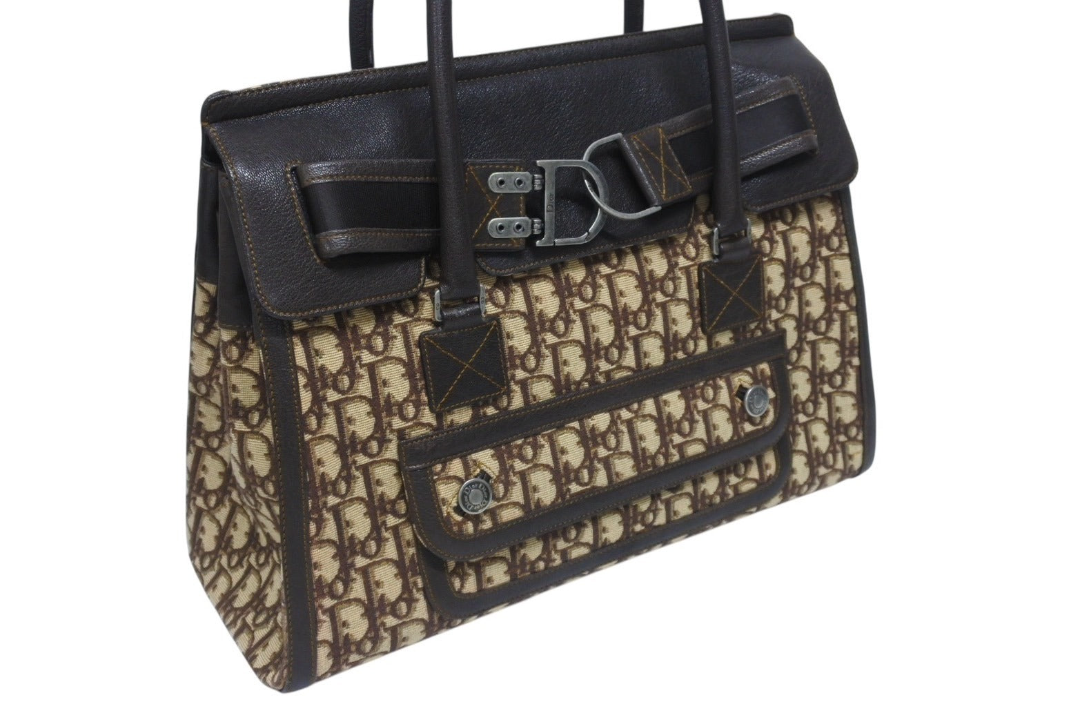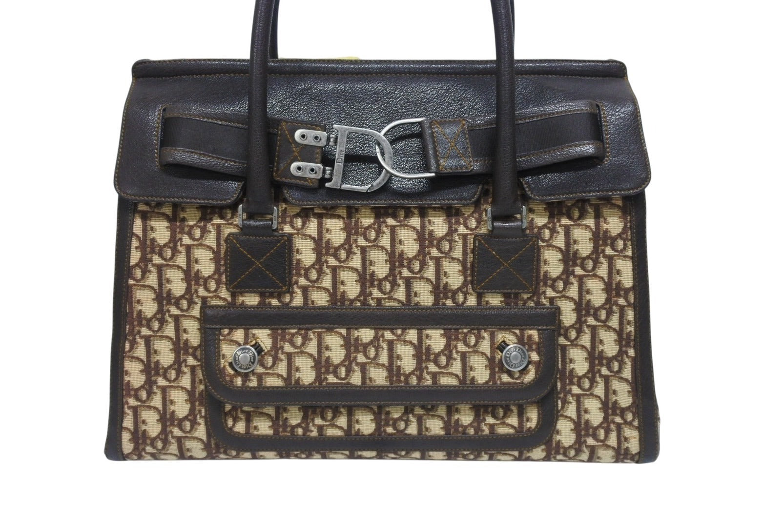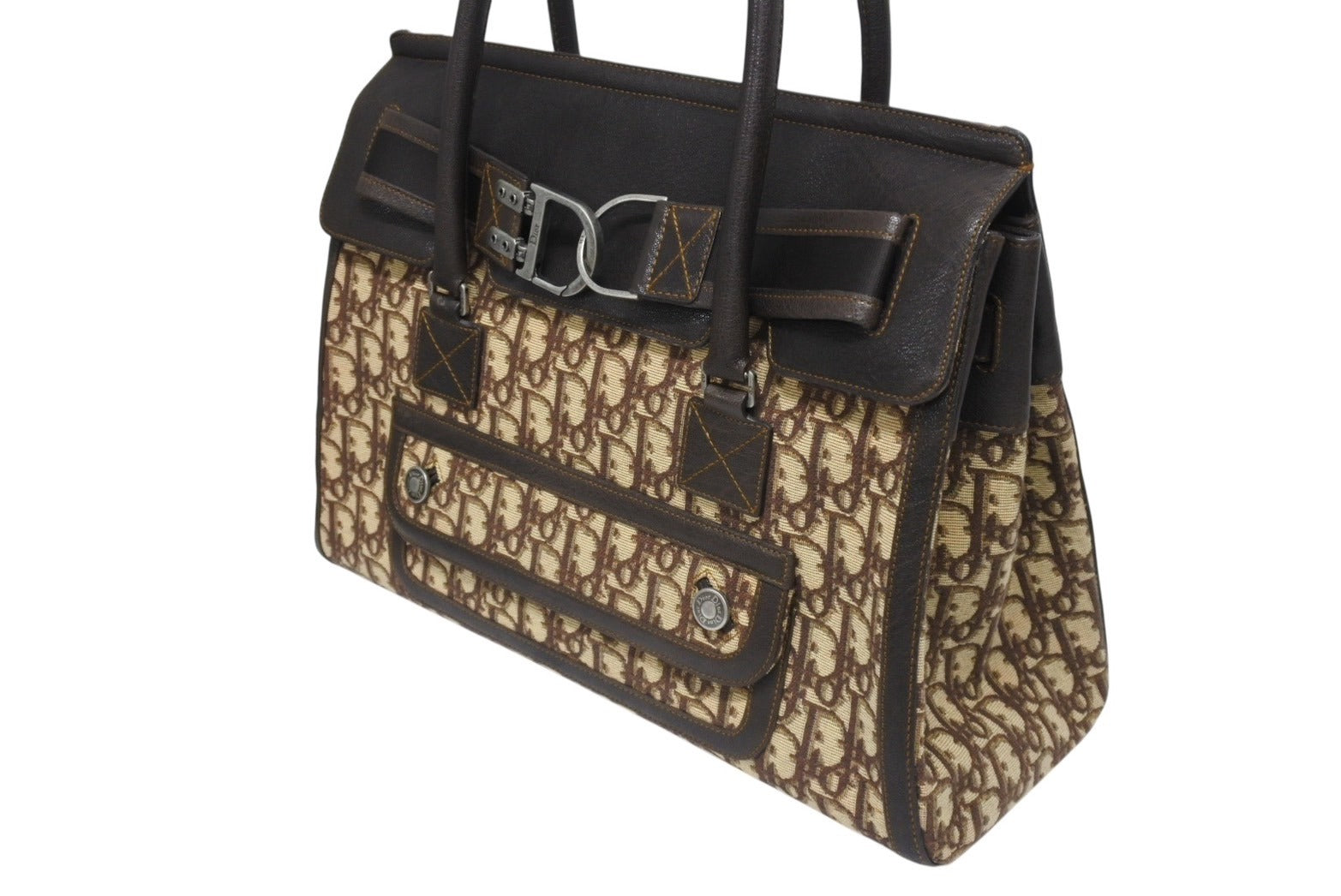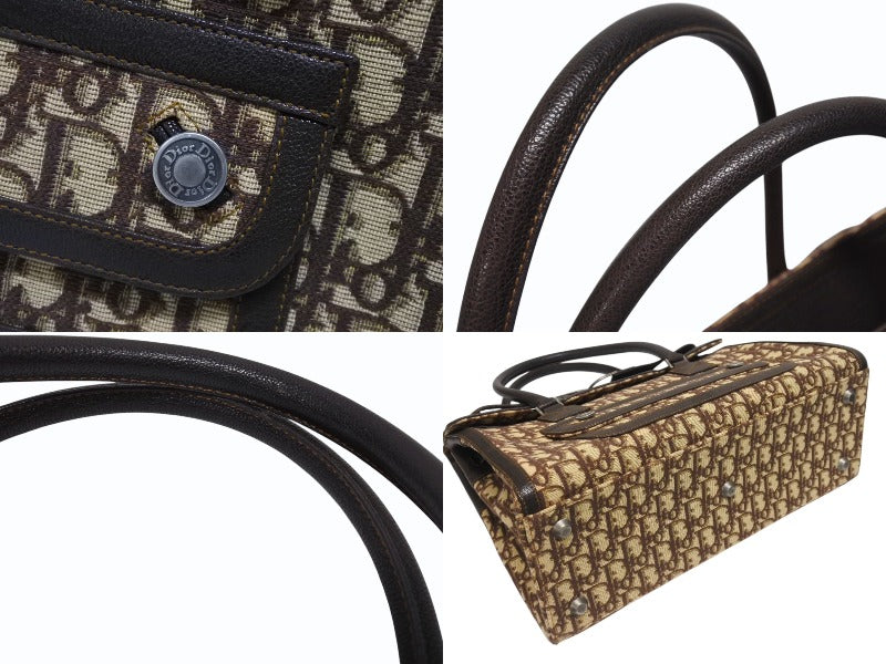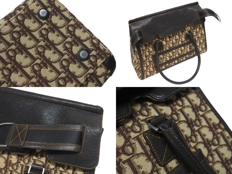 Christian Dior クリスチャンディオール トロッター ハンドバッグ キャンバス レザー ブラウン シルバー金具 美品 中古 4b005260