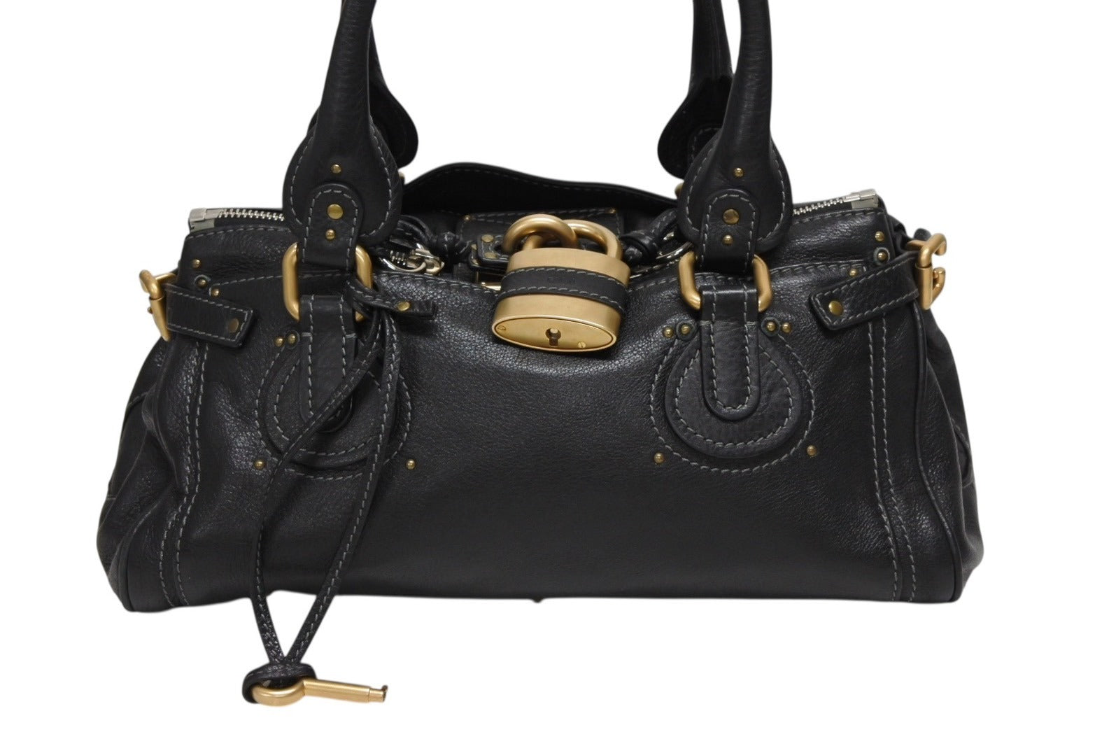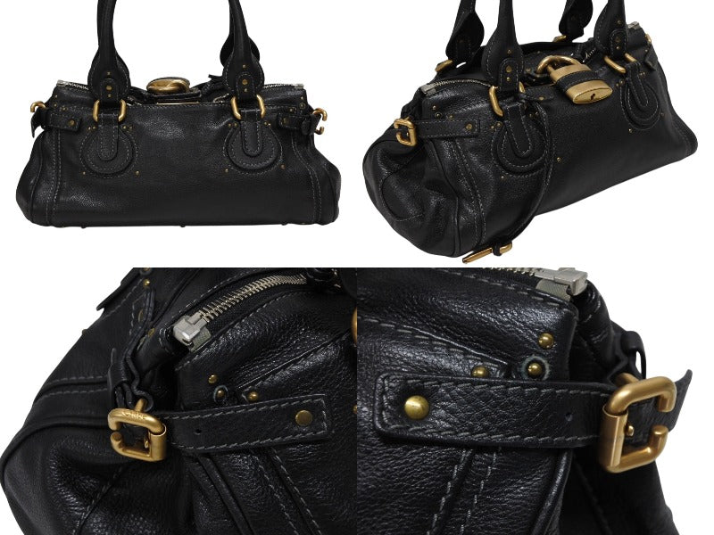 Chloe クロエ ハンドバッグ パディントン ワンショルダーバッグ ブラック レザー 7ESA02 ゴールド金具 美品 中古 4b008189