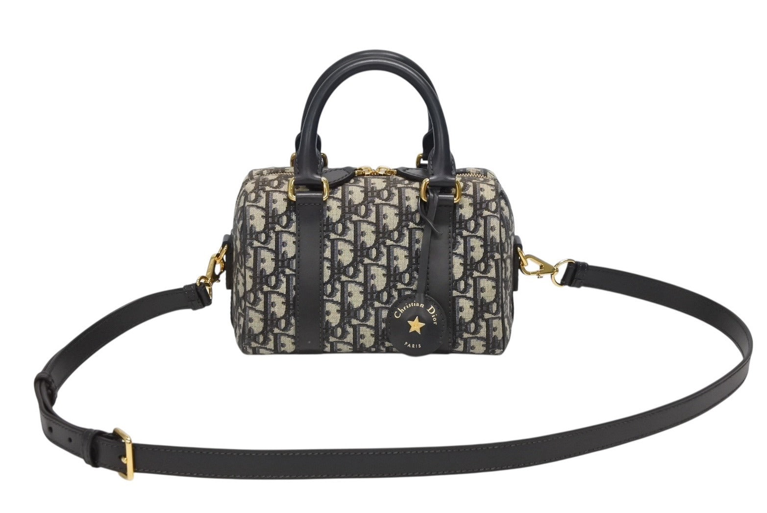 マリア・グラツィア・キウリが手がけた、エレガントでモダンな「Dior Groove 20 (ディオール グルーヴ 20)」バッグ。ブルーの「ディオール オブリーク」ジャカードを使用し、Christian Dior Parisシグネチャーとゴールドトーンのスターを添えたレザーキーホルダーをあしらっています。ジップには専用のキーで解錠できるパドロックが付属。必要なものをすべて収納できる大容量のコンパートメントに、スリップポケットとジップポケットを1つずつ配しました。レザーのトップハンドルでハンドバッグとしてお持ちいただけるほか、取り外しと長さの調節が可能なストラップでショルダーバッグやクロスボディバッグとしてもお使いいただける、デイリーに活躍するバッグです。