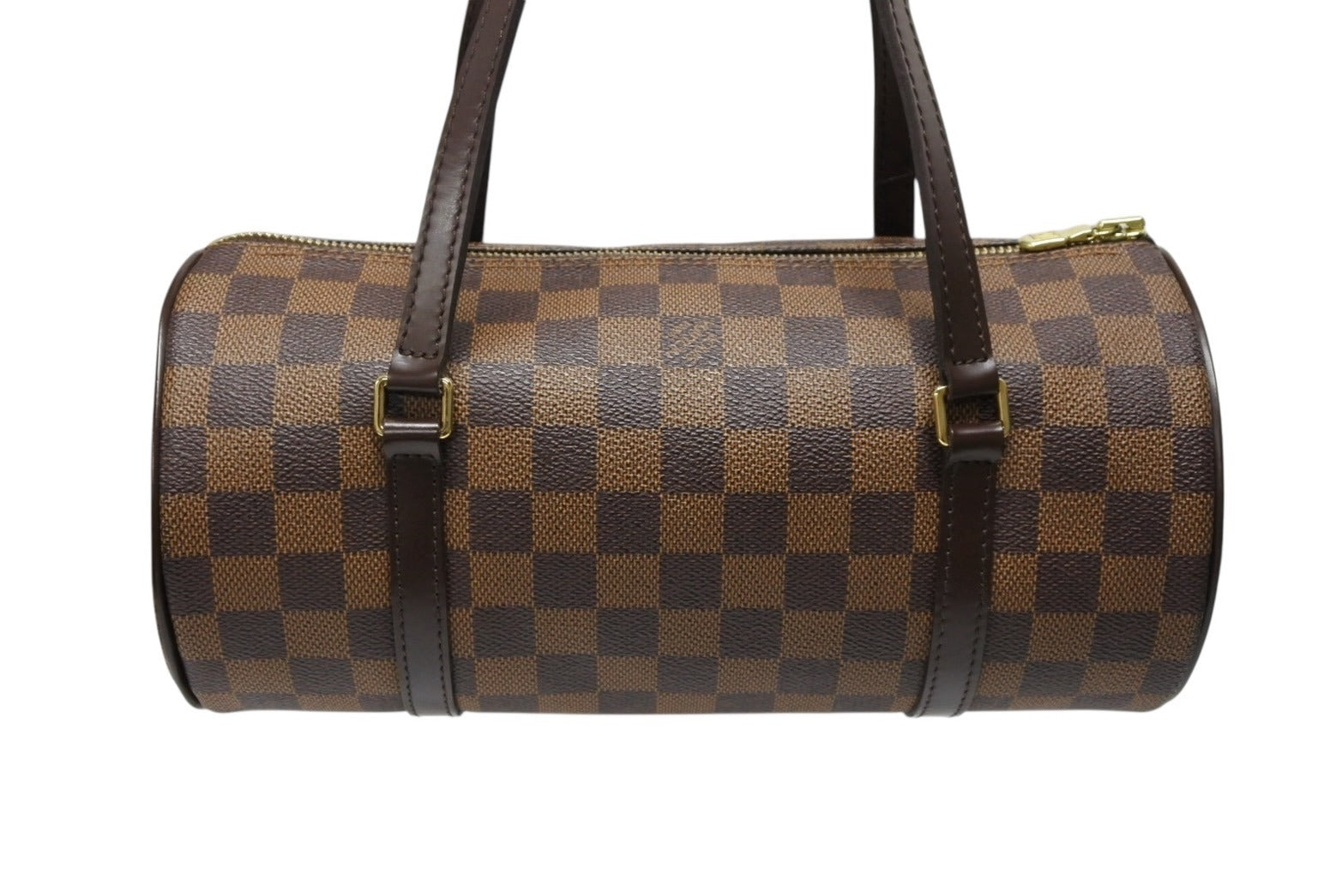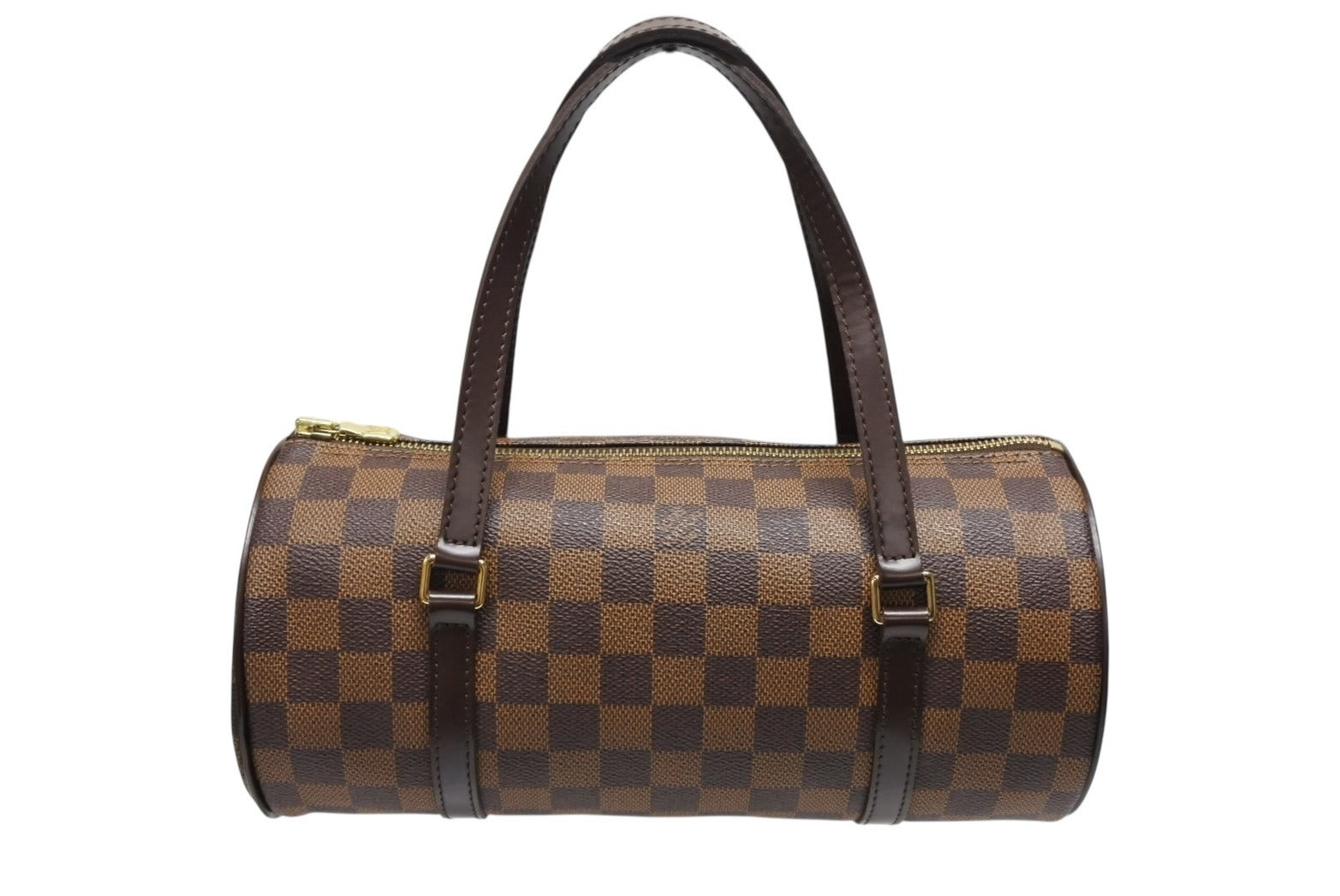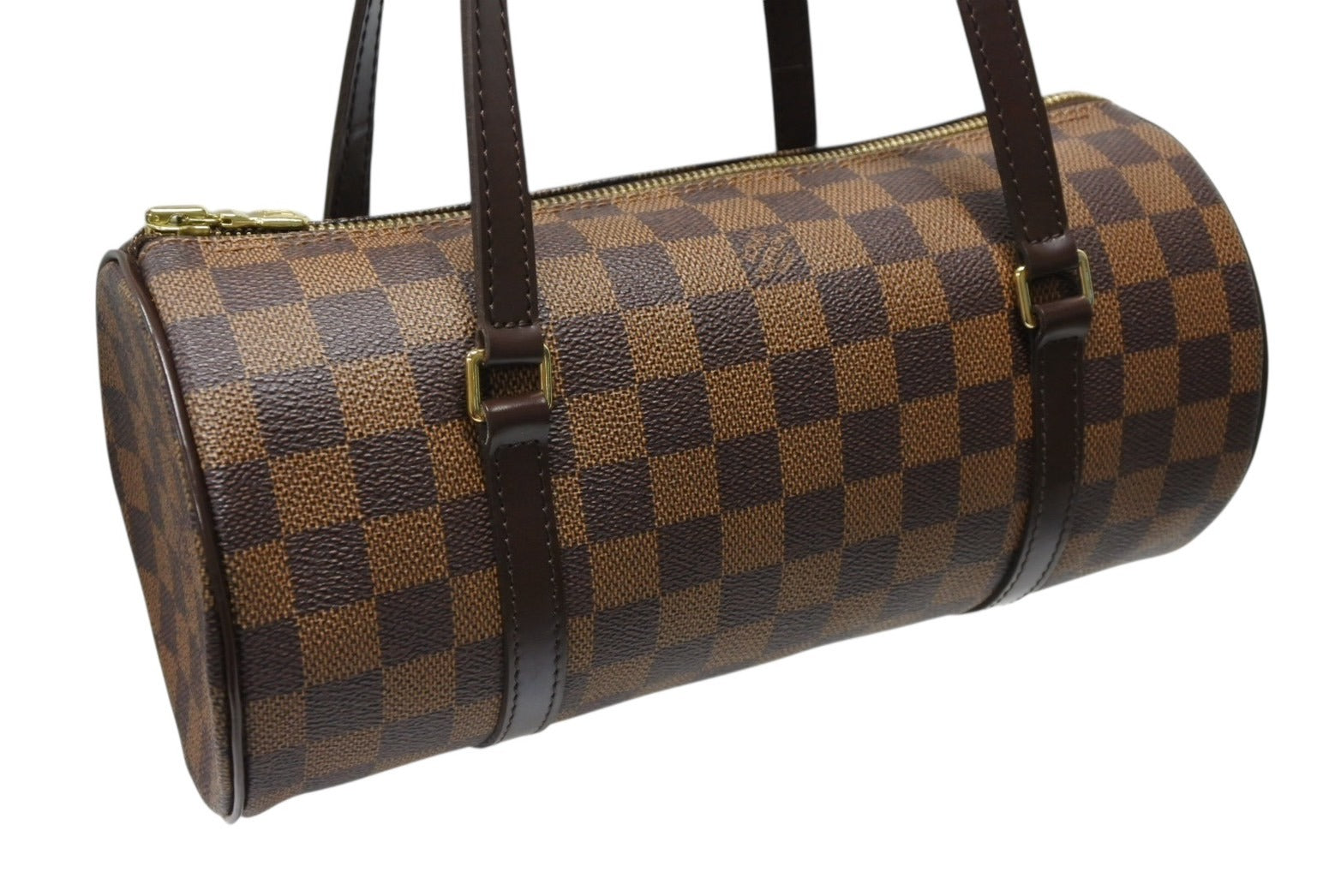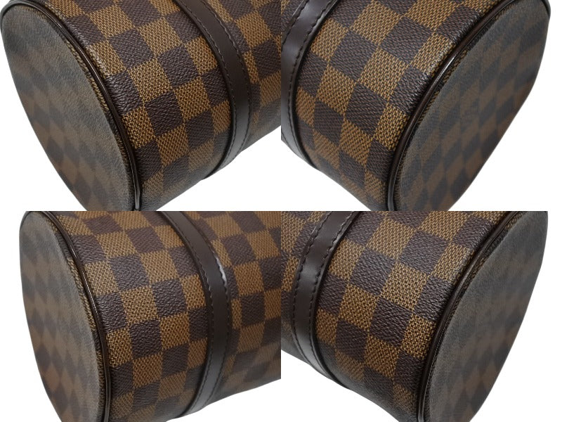 LOUIS VUITTON ルイヴィトン ダミエ エベヌ パピヨンPM ハンドバッグ N51304 筒型 ドラム型 ブラウン ゴールド金具 美品 中古 4b008649