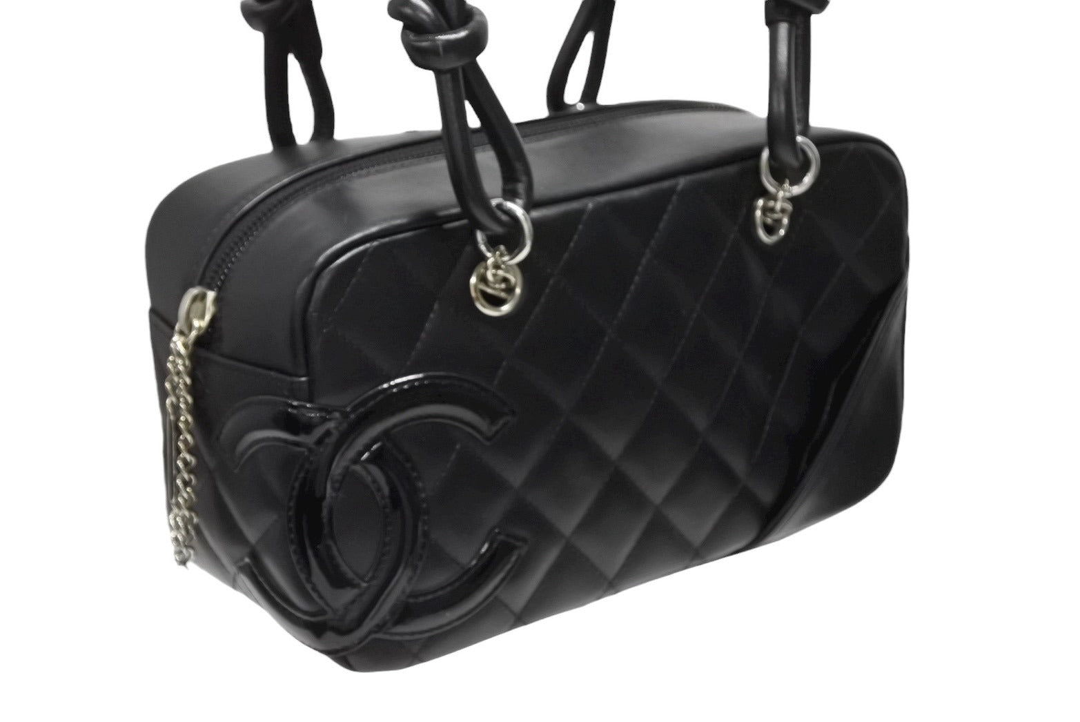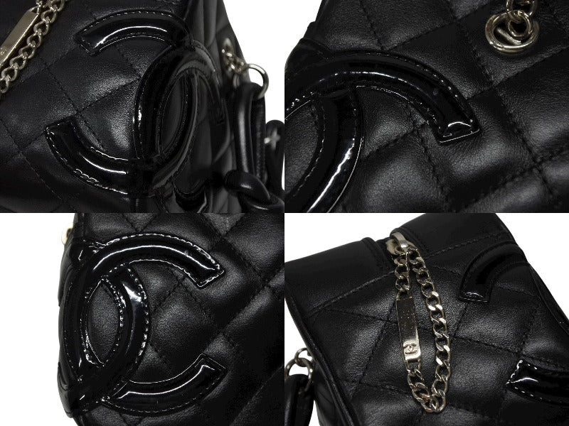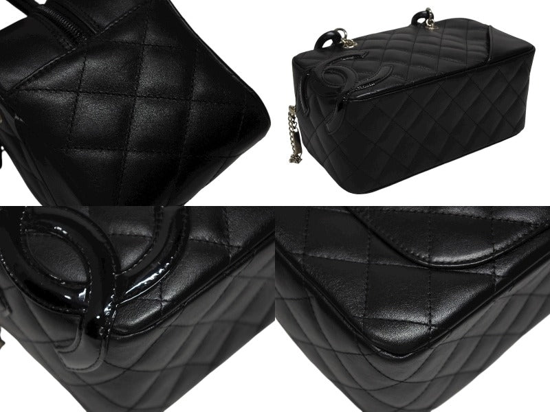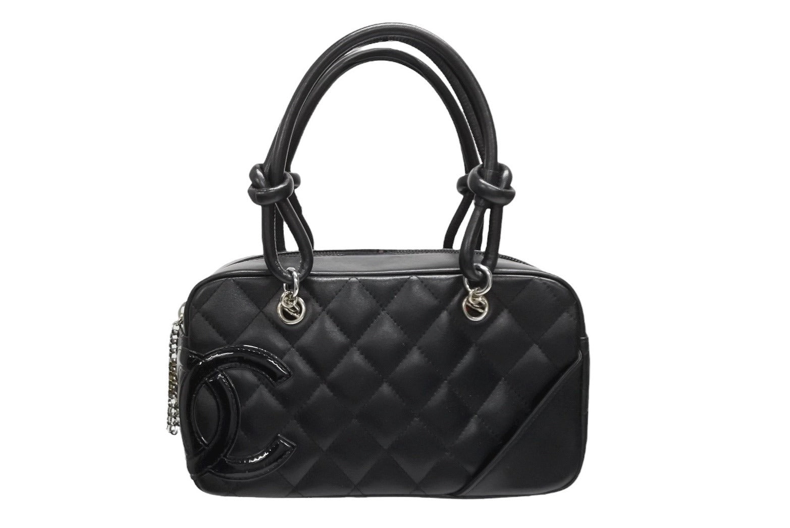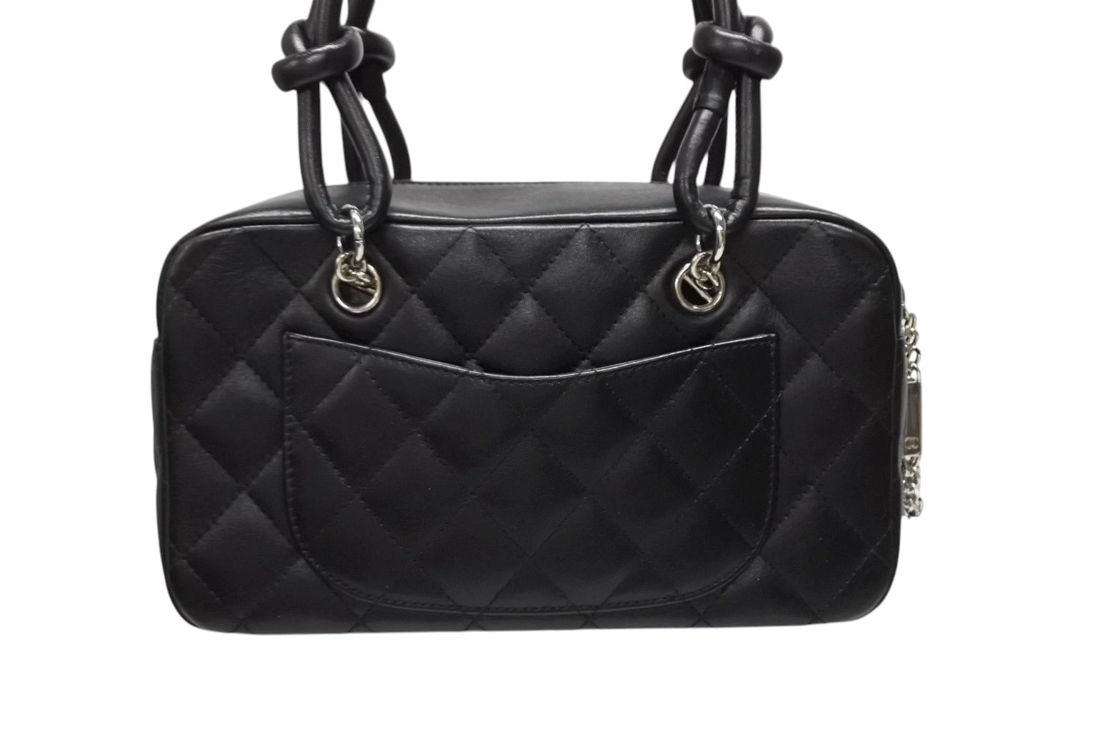 極美品 CHANEL シャネル カンボンライン ミニ ボーリングバッグ A25171 10番台 ココマーク キルティング ブラック シルバー金具 中古 4b008974