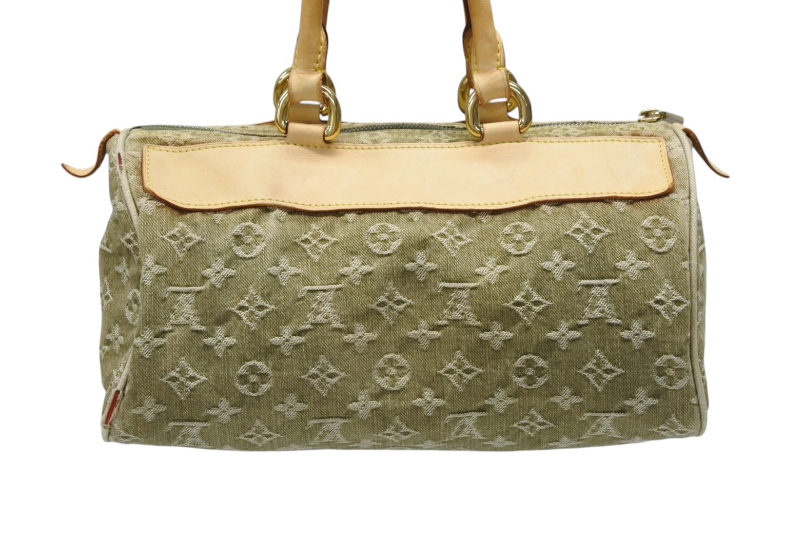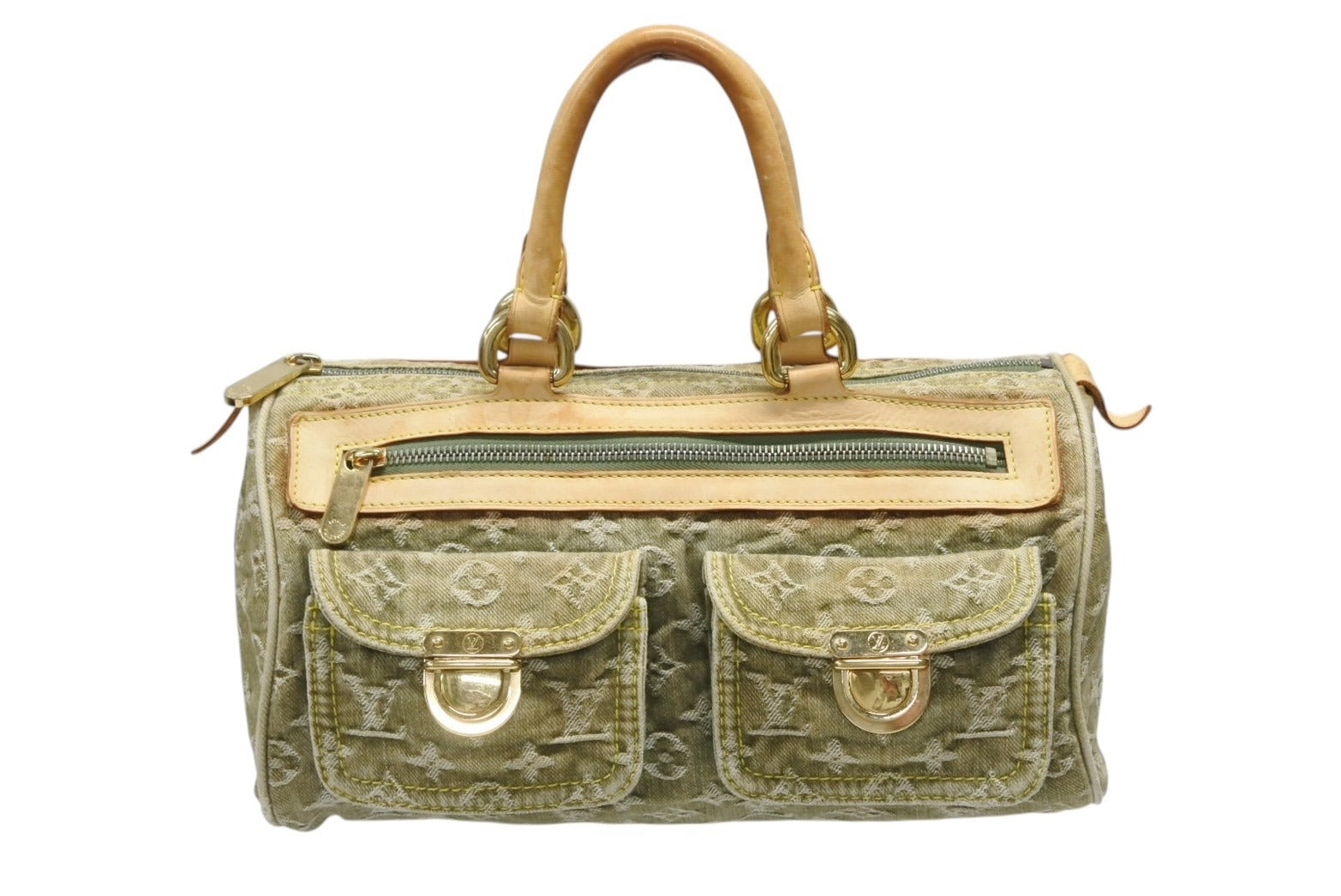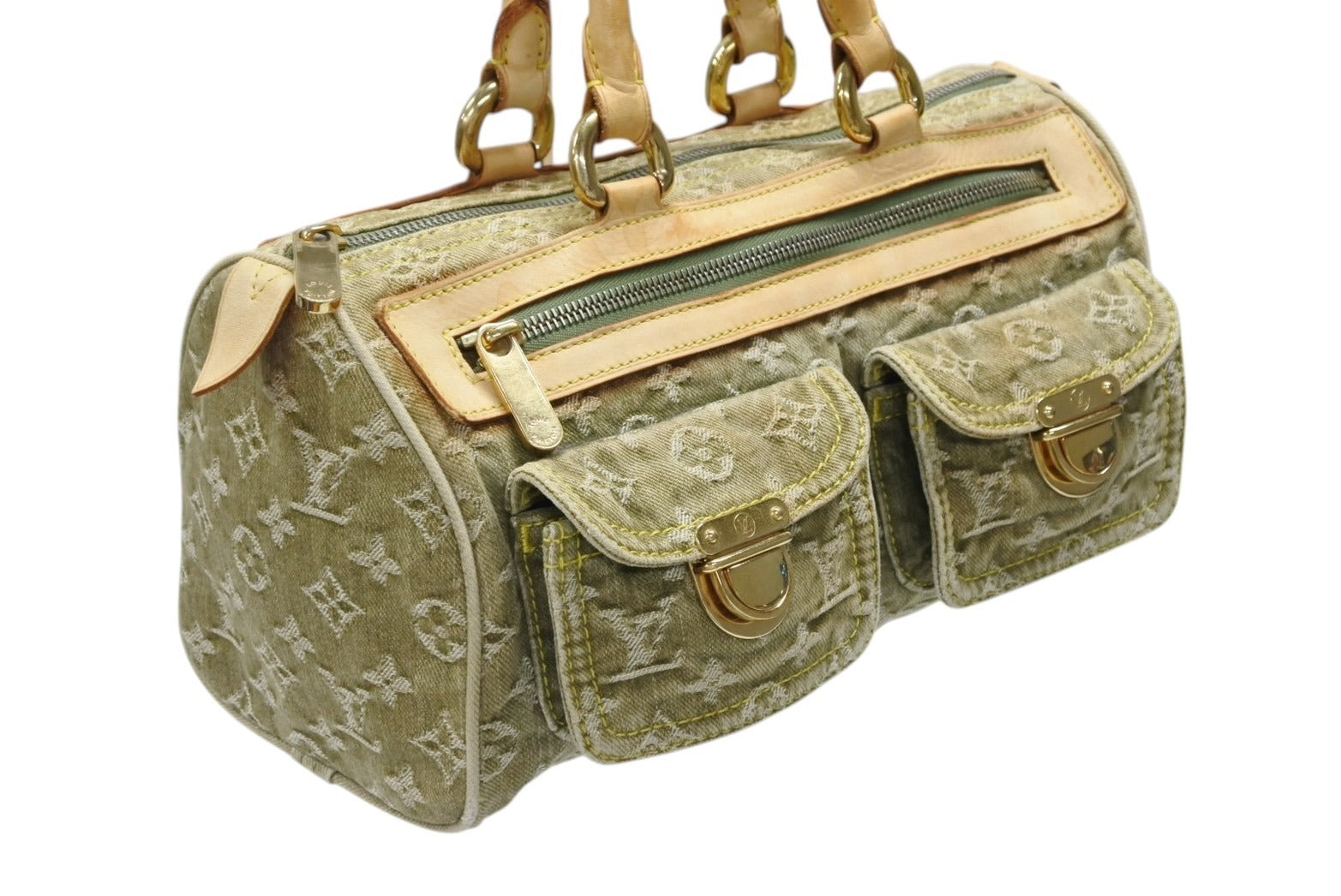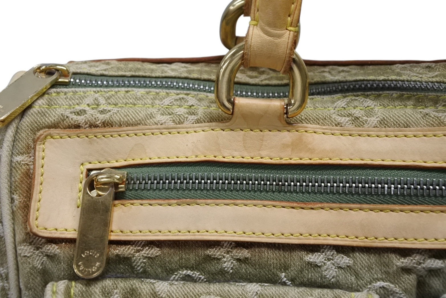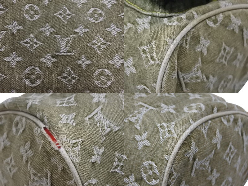 さらにデニム地は丈夫なので、幅広いシチュエーションでカジュアルに持ち運びでき、活躍間違いなしのアイテムです。正面にはファスナーポケットと可愛いコアラ金具のポケット2つ、間口はシングルファスナー開閉で、中はカーキ色のアルカンタラ地で、ポケットが1つあります。