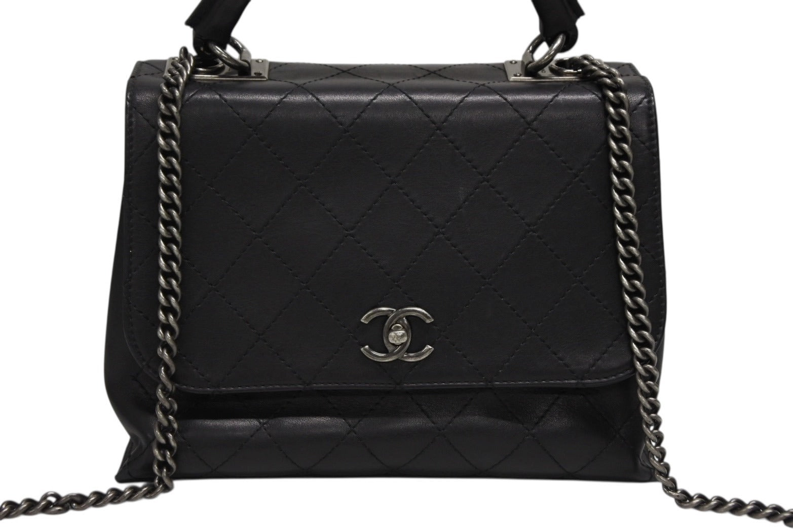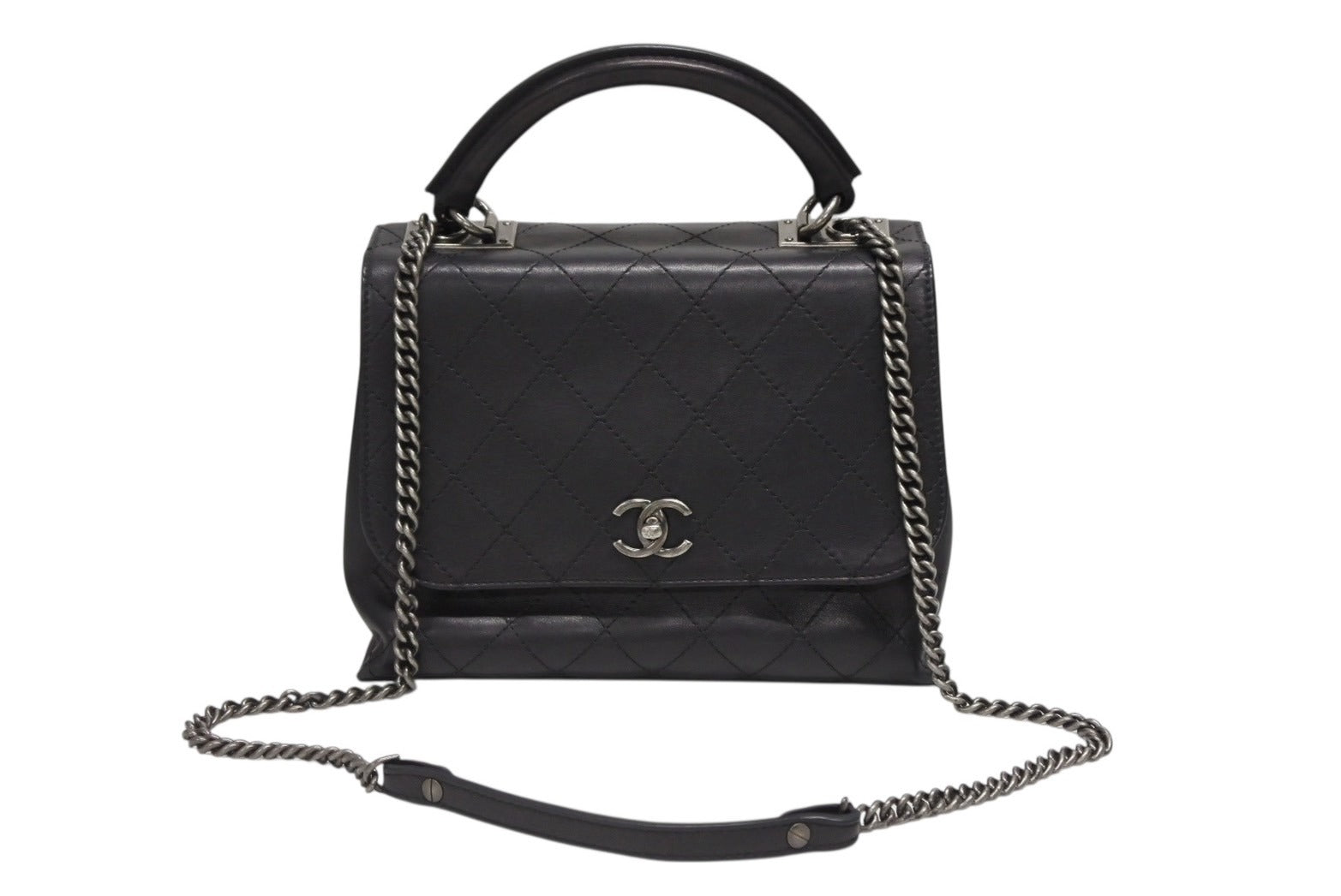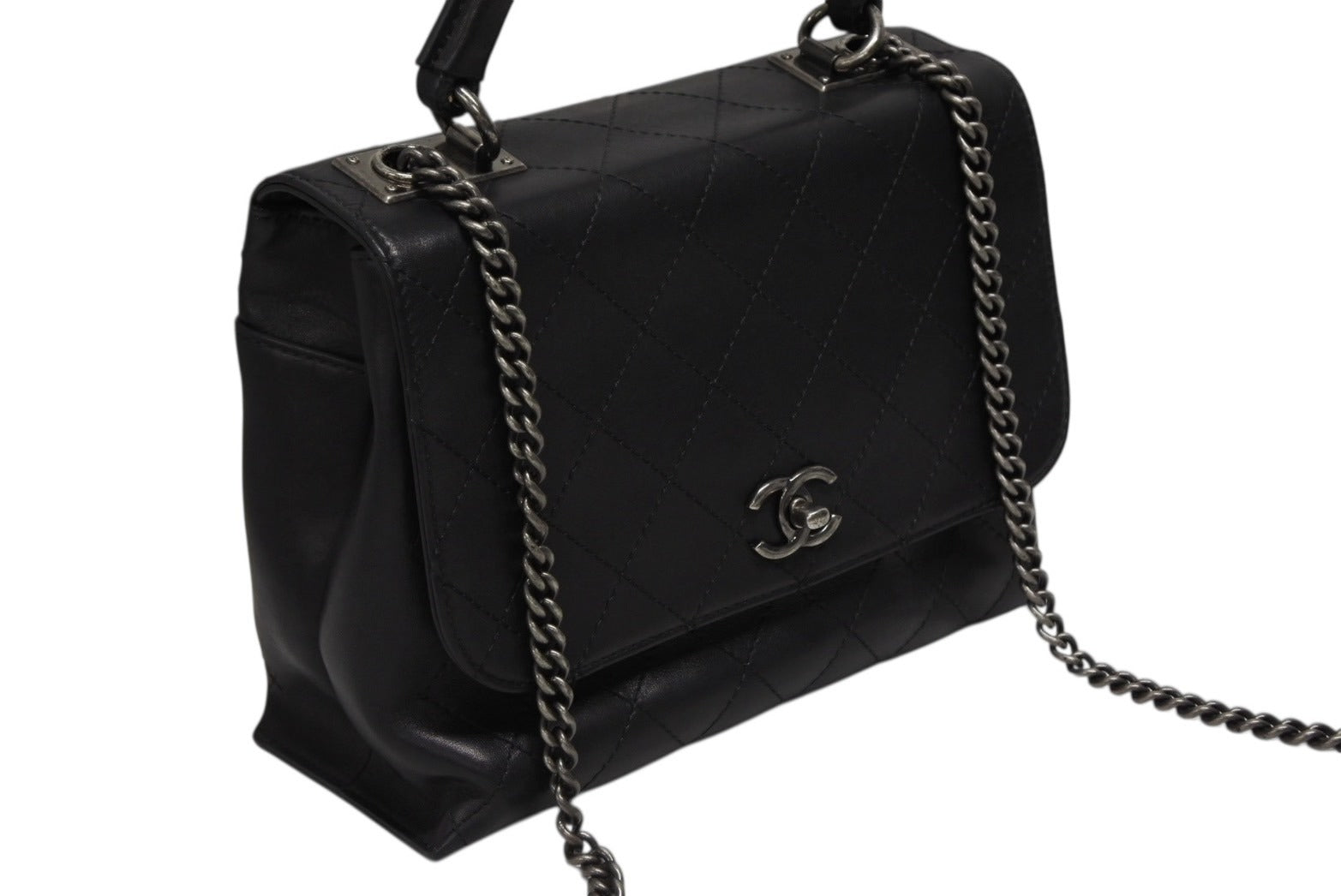 CHANEL シャネル マトラッセ ケリー型 トップハンドルバッグ ハンドバッグ 22番台 ラムスキン ブラック 美品 中古 4b009189