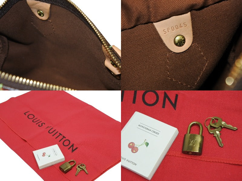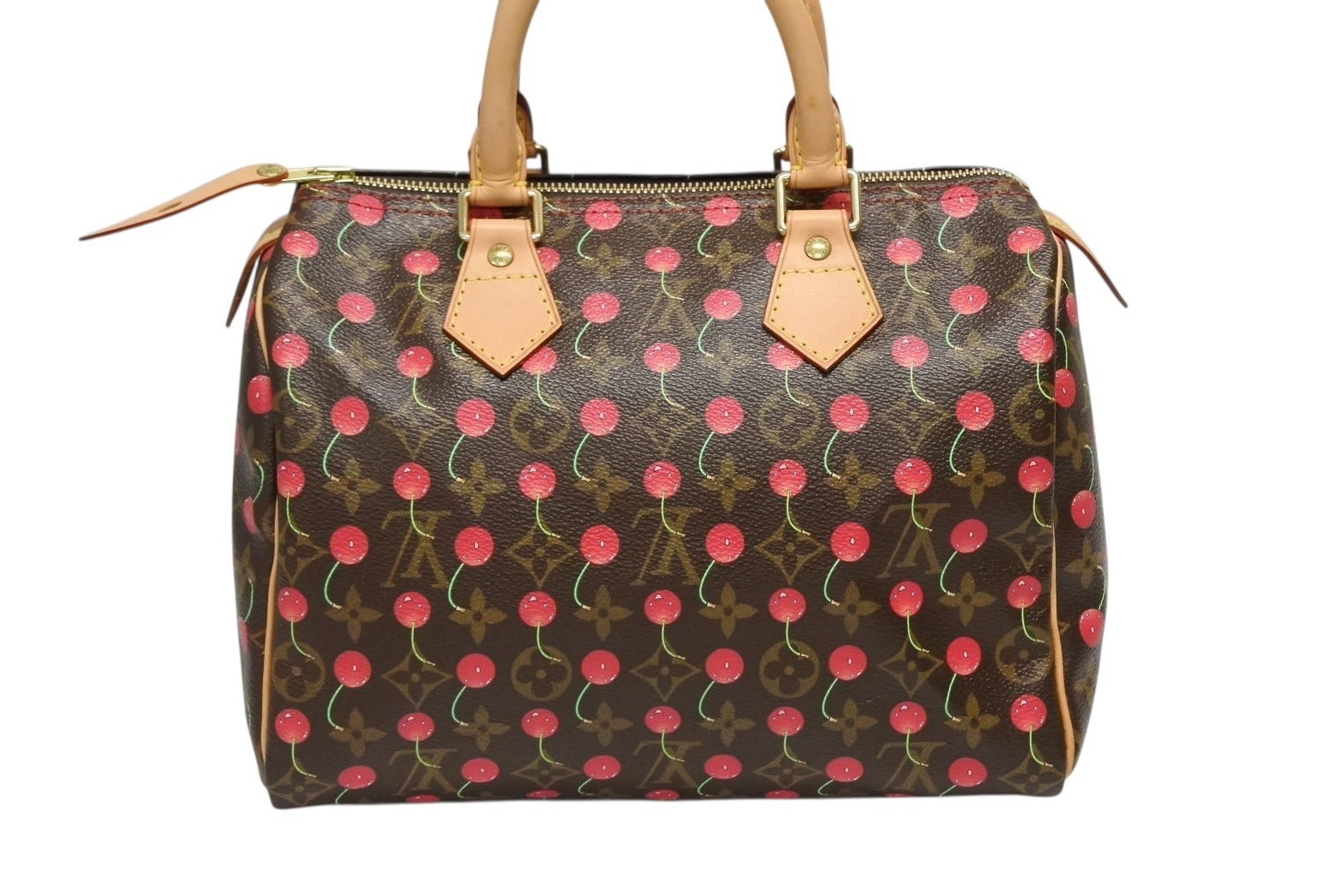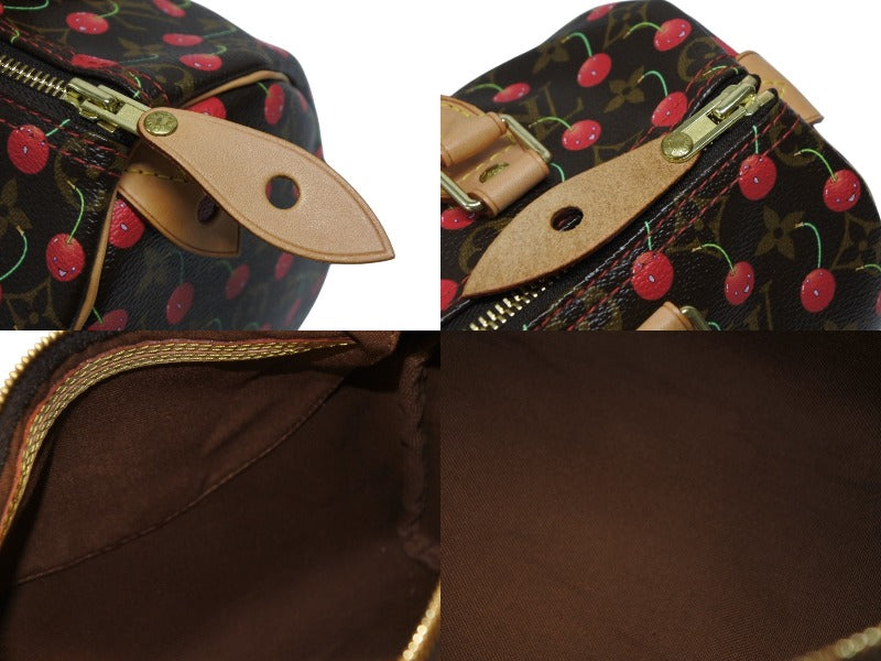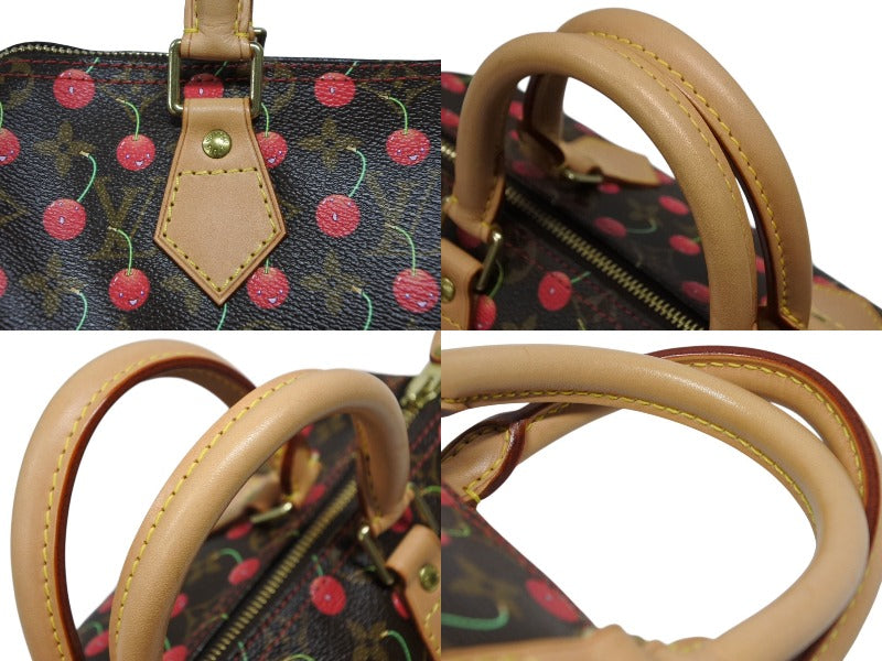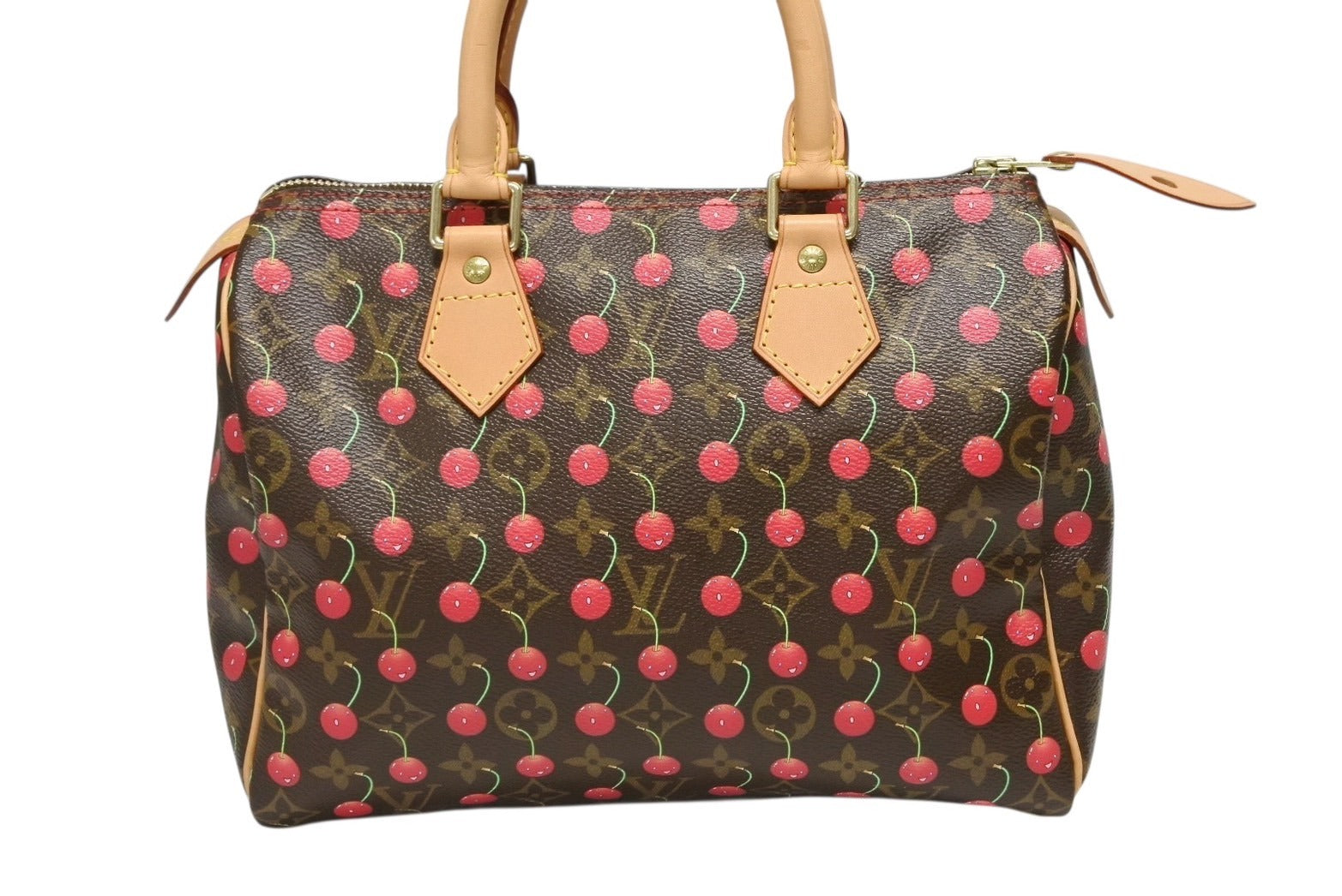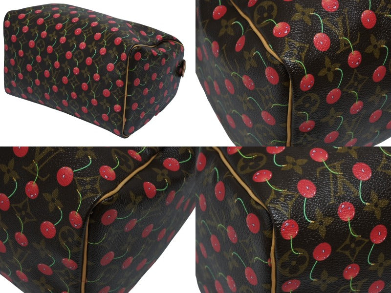新品同様 LOUIS VUITTON ルイヴィトン スピーディ25 ハンドバッグ M95009 モノグラム チェリー レザー 村上隆 中古 4b009228